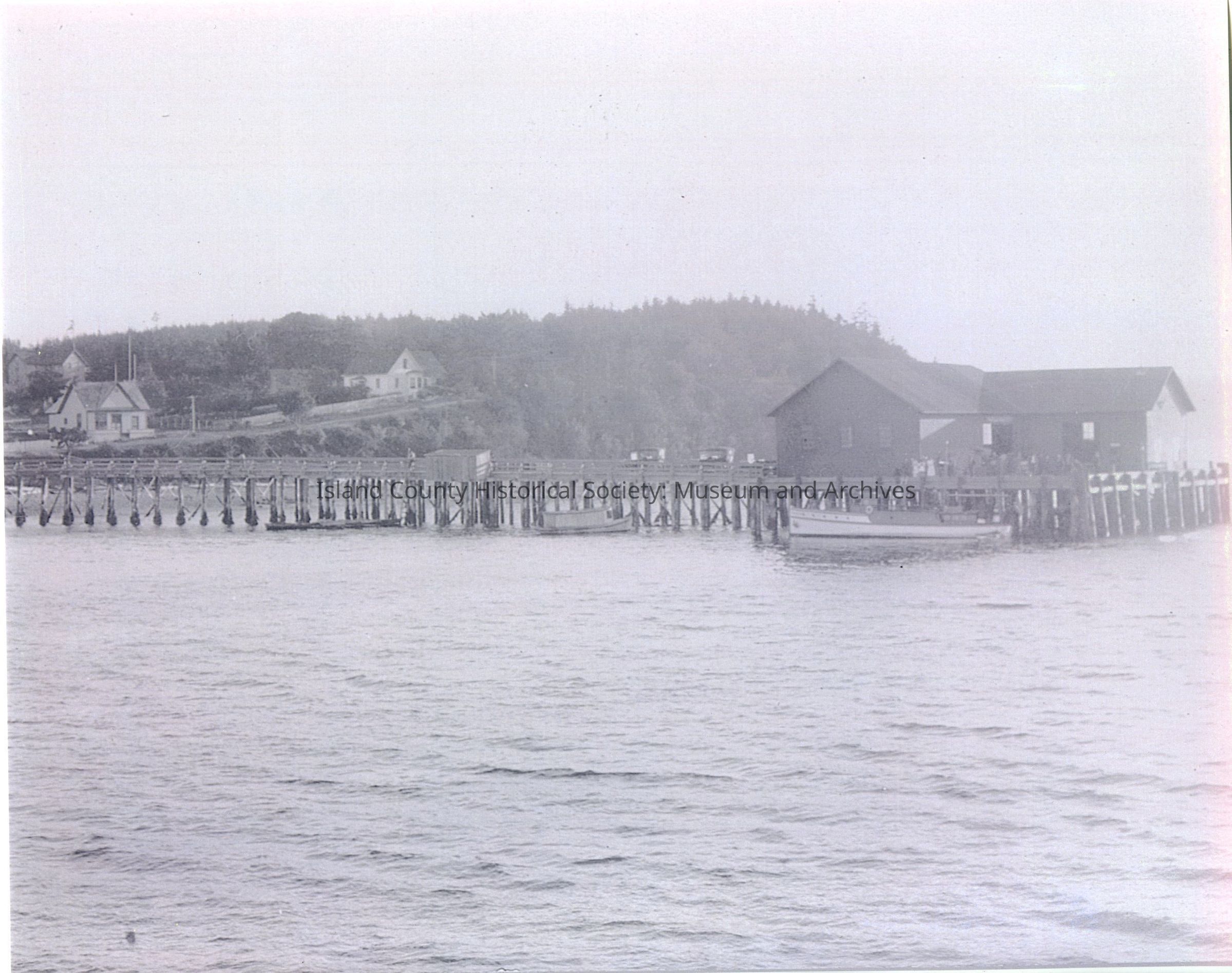 Photograph of the Coupeville Whard, c. 1915-1925. Notice the touring cars on the dock. Photo by Howard Grasser, from the collection of Captain Harry Arnold.Photograph Details