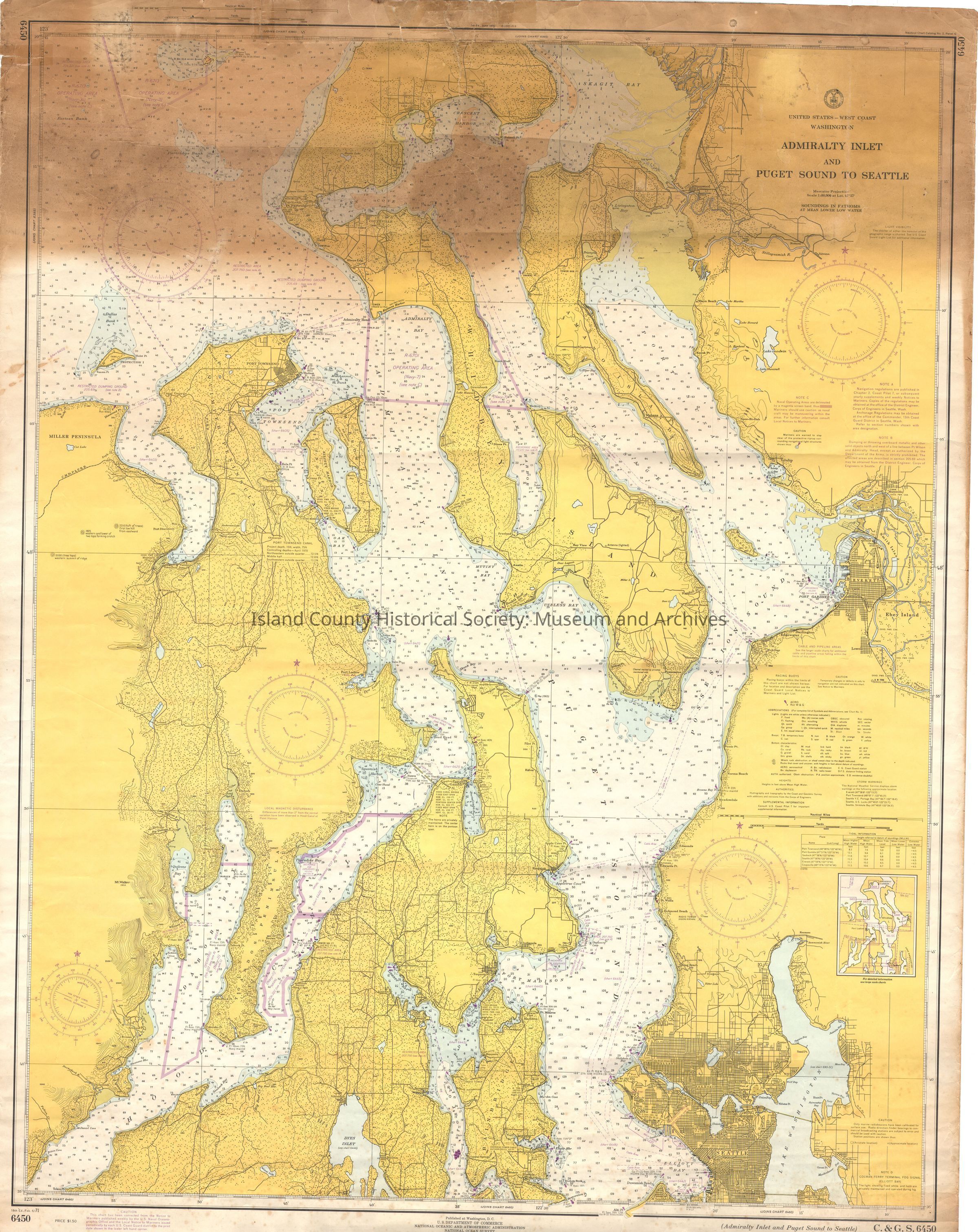 large nautical map of Admiralty Inlet and Puget Sound to Seattle
