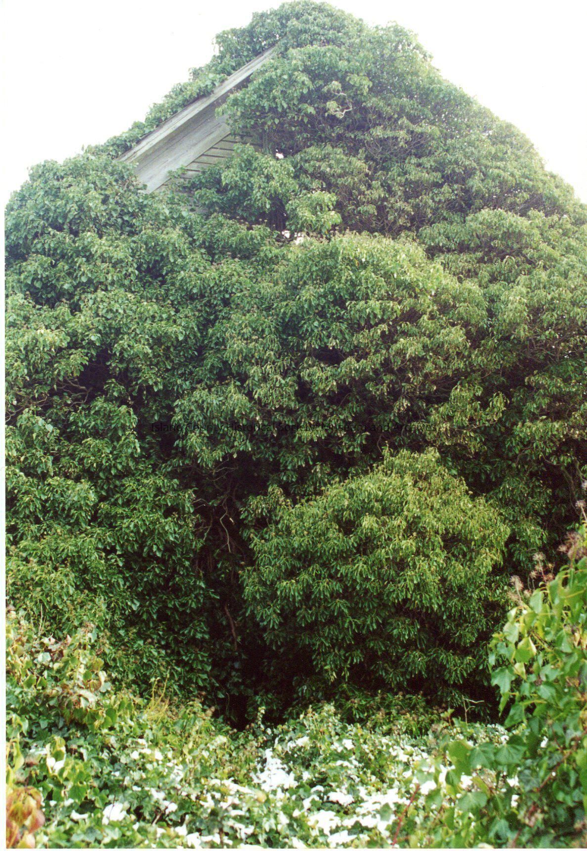 Grove C Terry house exterior shot (on Burchell Road). Covered in shrubbery