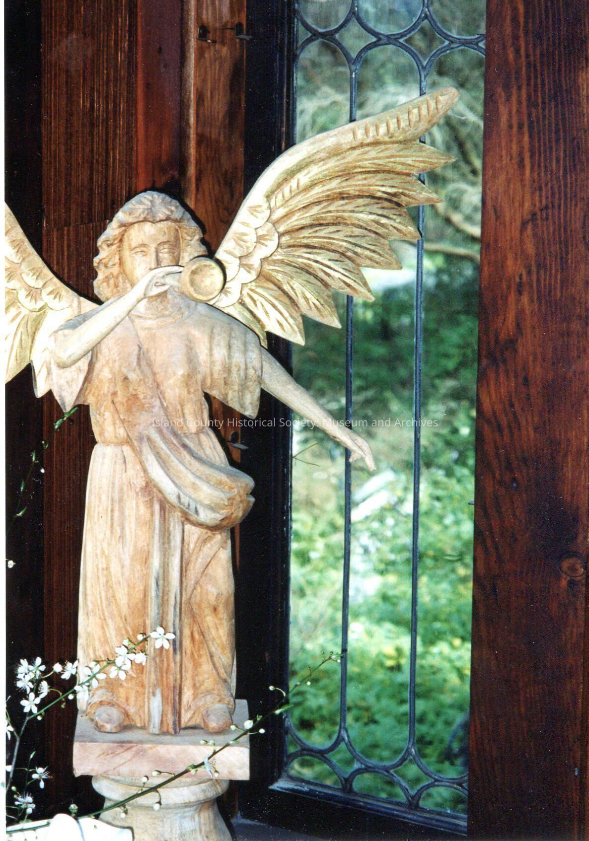Close-up shot of angel ornament at window. Interior setting. From Engle House?