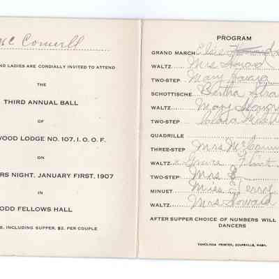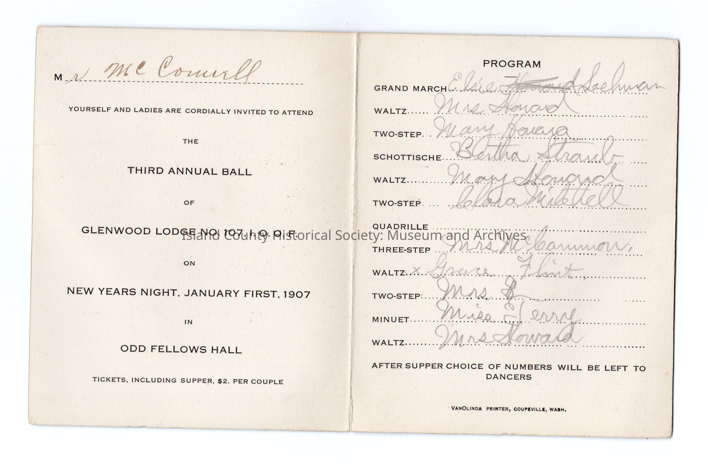 Glenwood Lodge Third Annual Ball on New Years Night, 1907