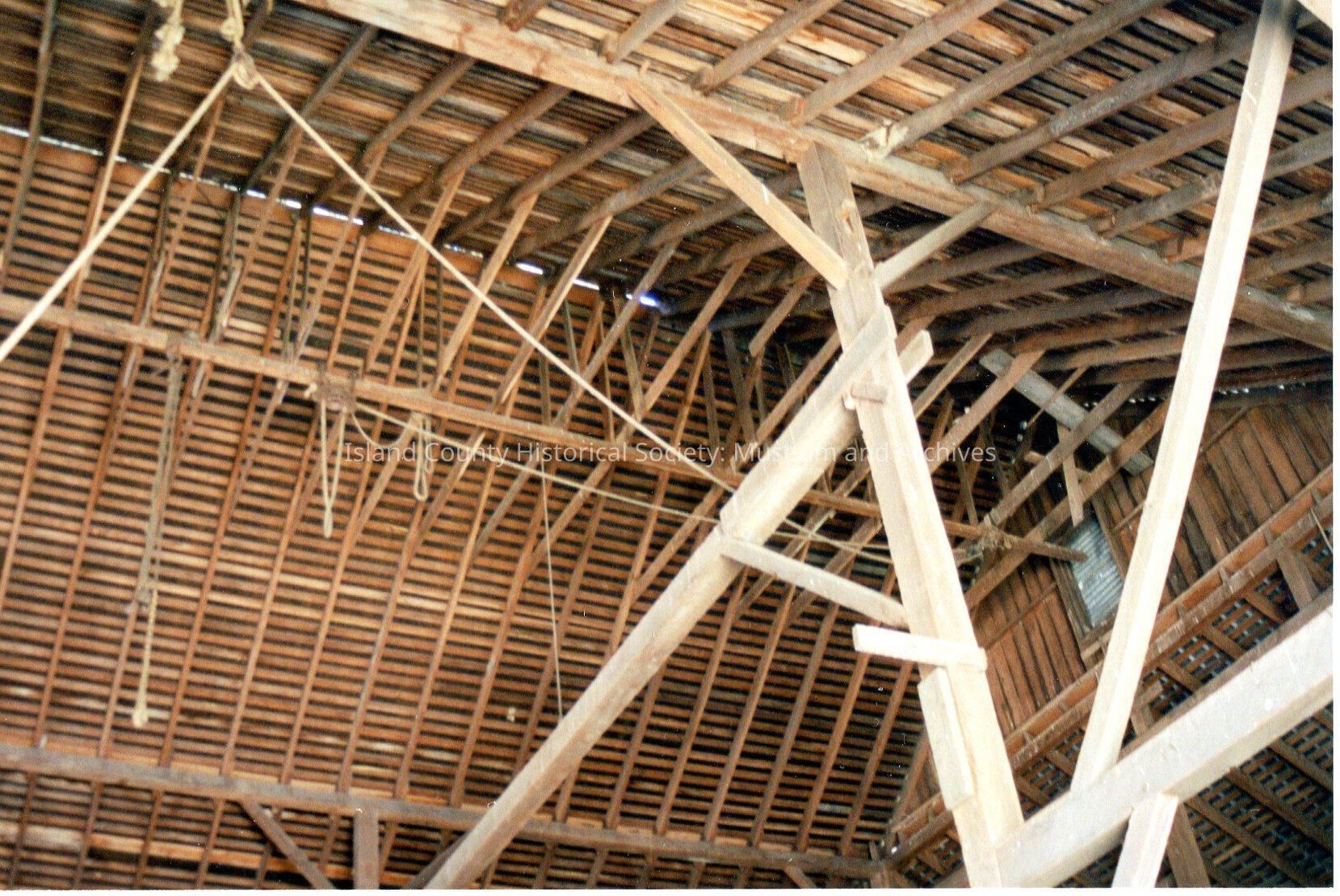 Smith Barn interior. Shot of the rafters.