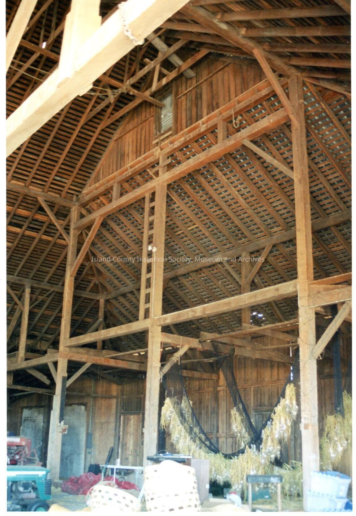 Smith/Sherman/Bishop Barn (came in envelope with all three names on it and no means of easily distinguishing between them). Interior shot- high rafters, farm equipment and grass or other kind of plant hanging in from rafters.
