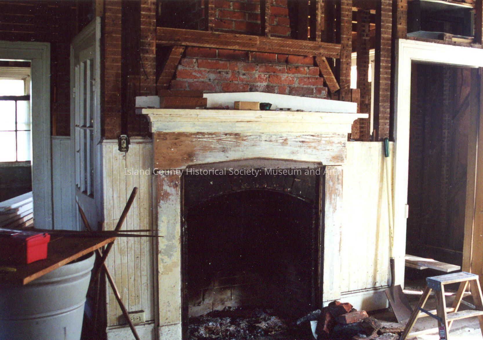 John Crockett House interior shot of fireplace. In state of dis(repair)