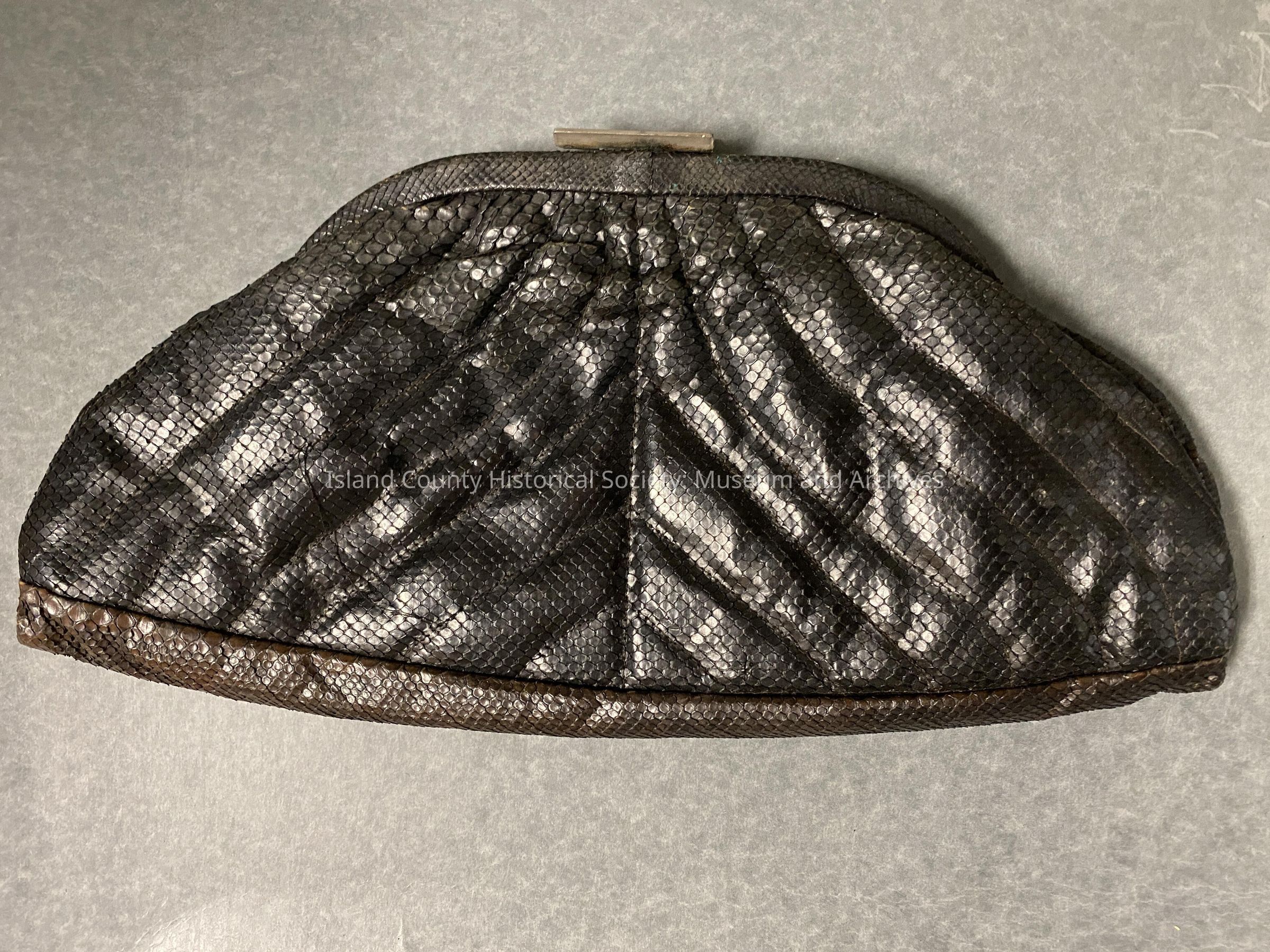 Clutch Bag, Black lizard skin, belonged to Miss Dickey.