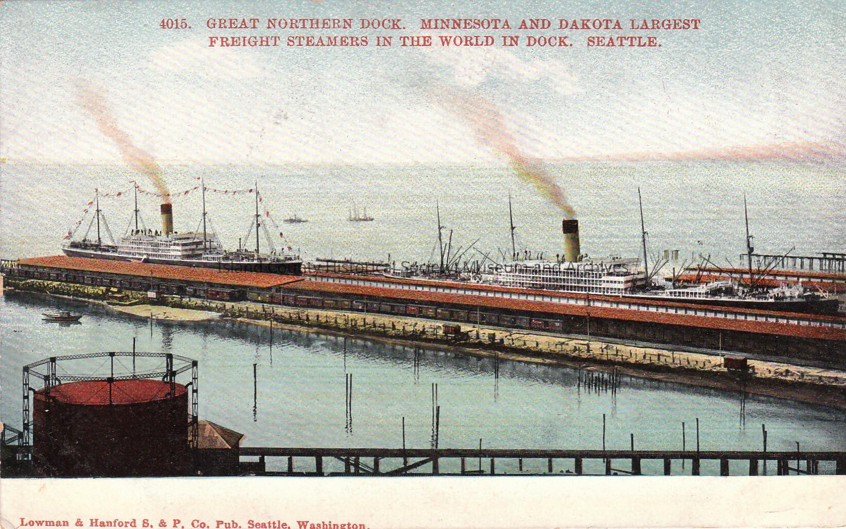 Great Northern Dock, Minnesota and Dakota, Largest Freight Steamers in the World in Dock. SeattleEntry/Object ID