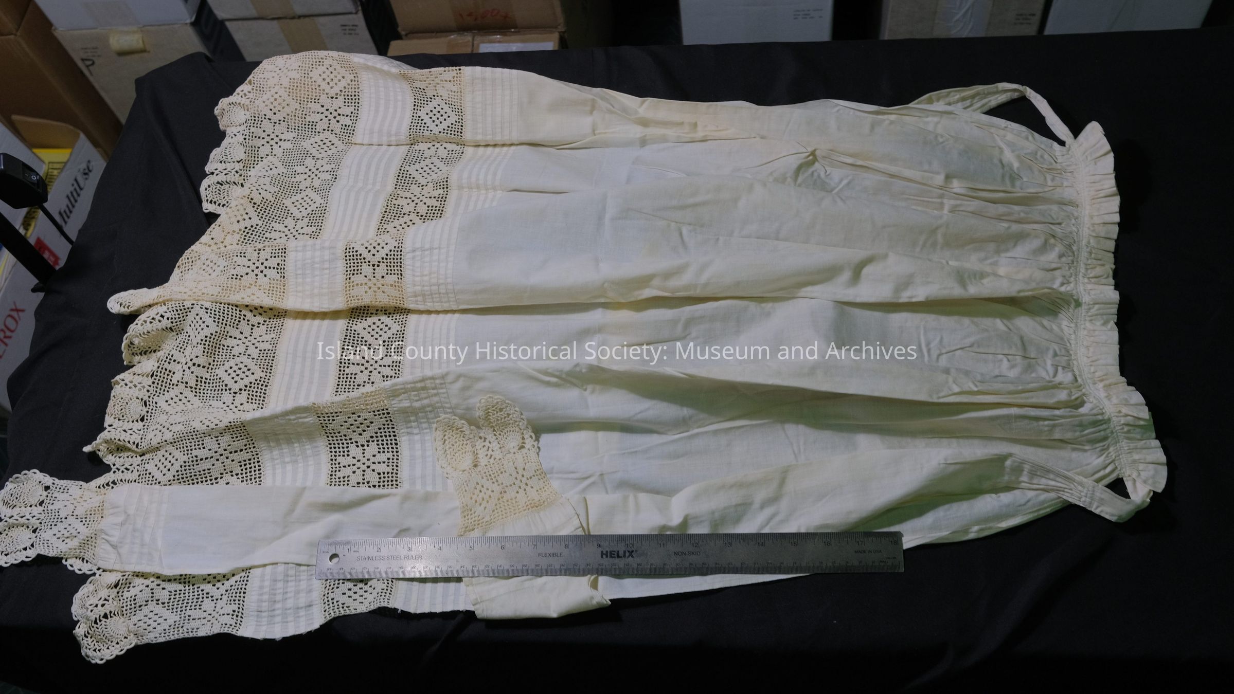 Apron with wide lace border. From Kineths.