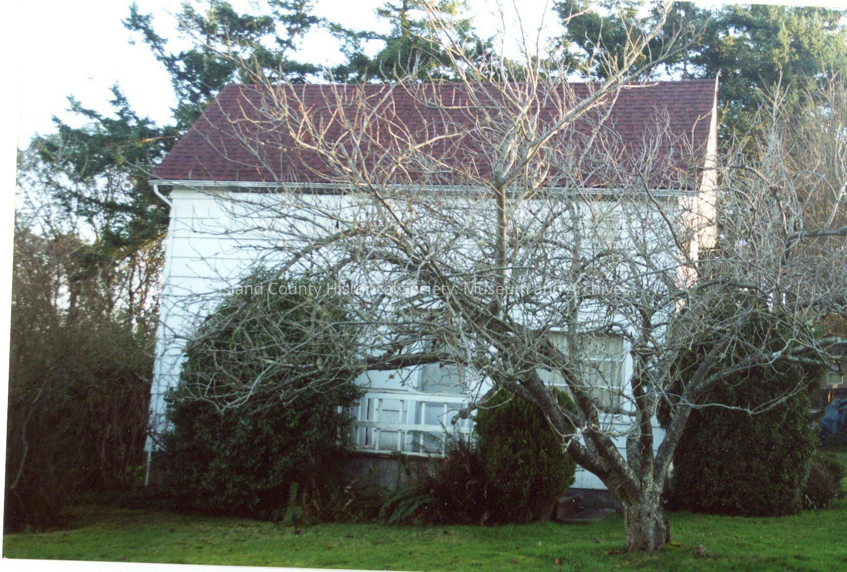 Carl Johnson house, front view mostly obscured by tree and bushes