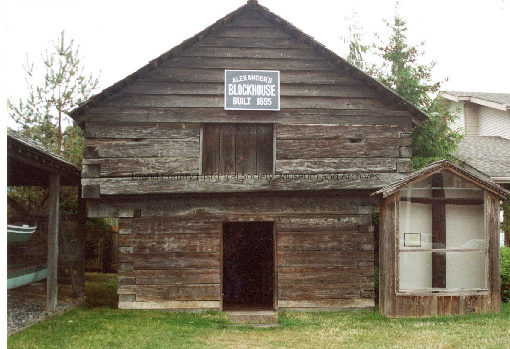 Alexander blockhouse situated outside ICHS museum next to the canoe holding area and wooden cross. Came in envelope marked "9/01"- September 2001?