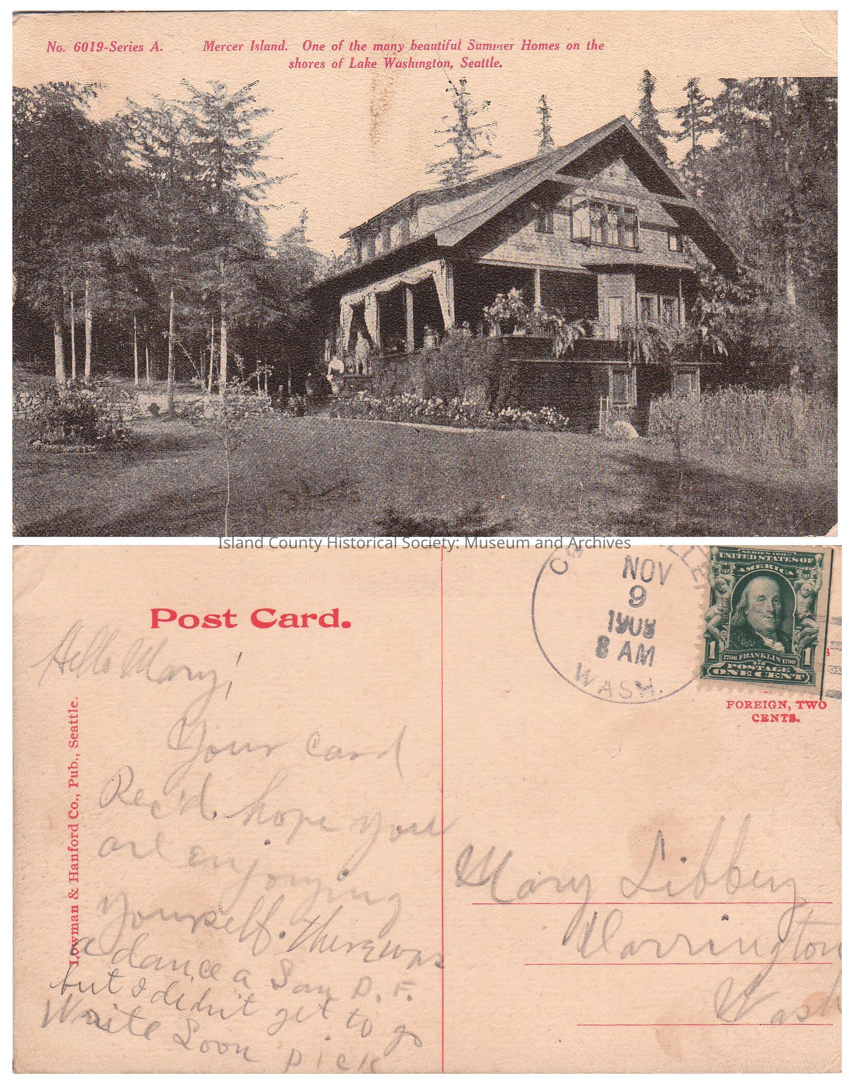 Mercer Island. One of the many beautiful Summer Homes on the shores of Lake Washington, SeattleEntry/Object ID