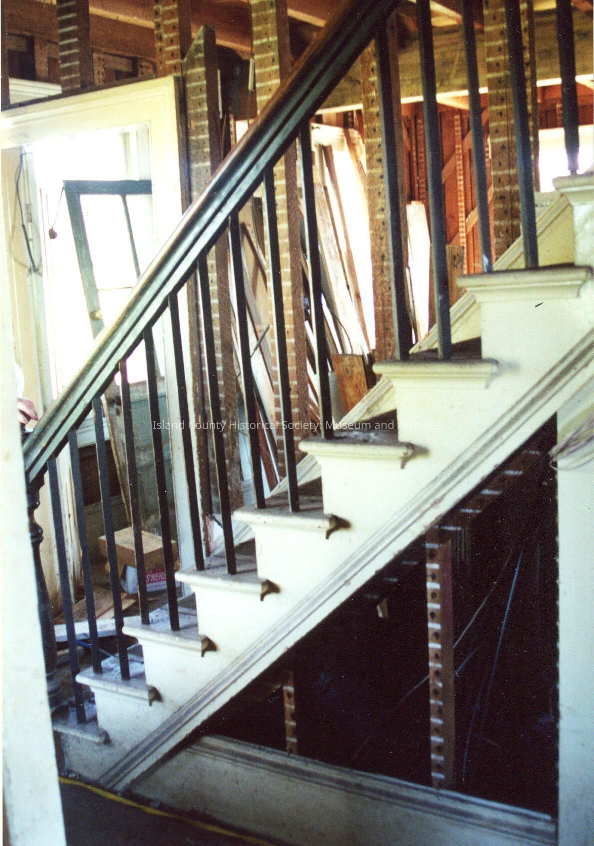 John Crockett/Engle house- interior, gutted, close-up of ascending staircase