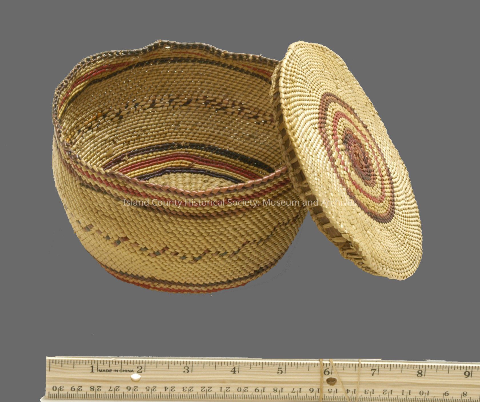Same photo as 1968-253B. This basket was likely made exclusively to sell to tourists and other non Indigenous peoples. Liekly Makah