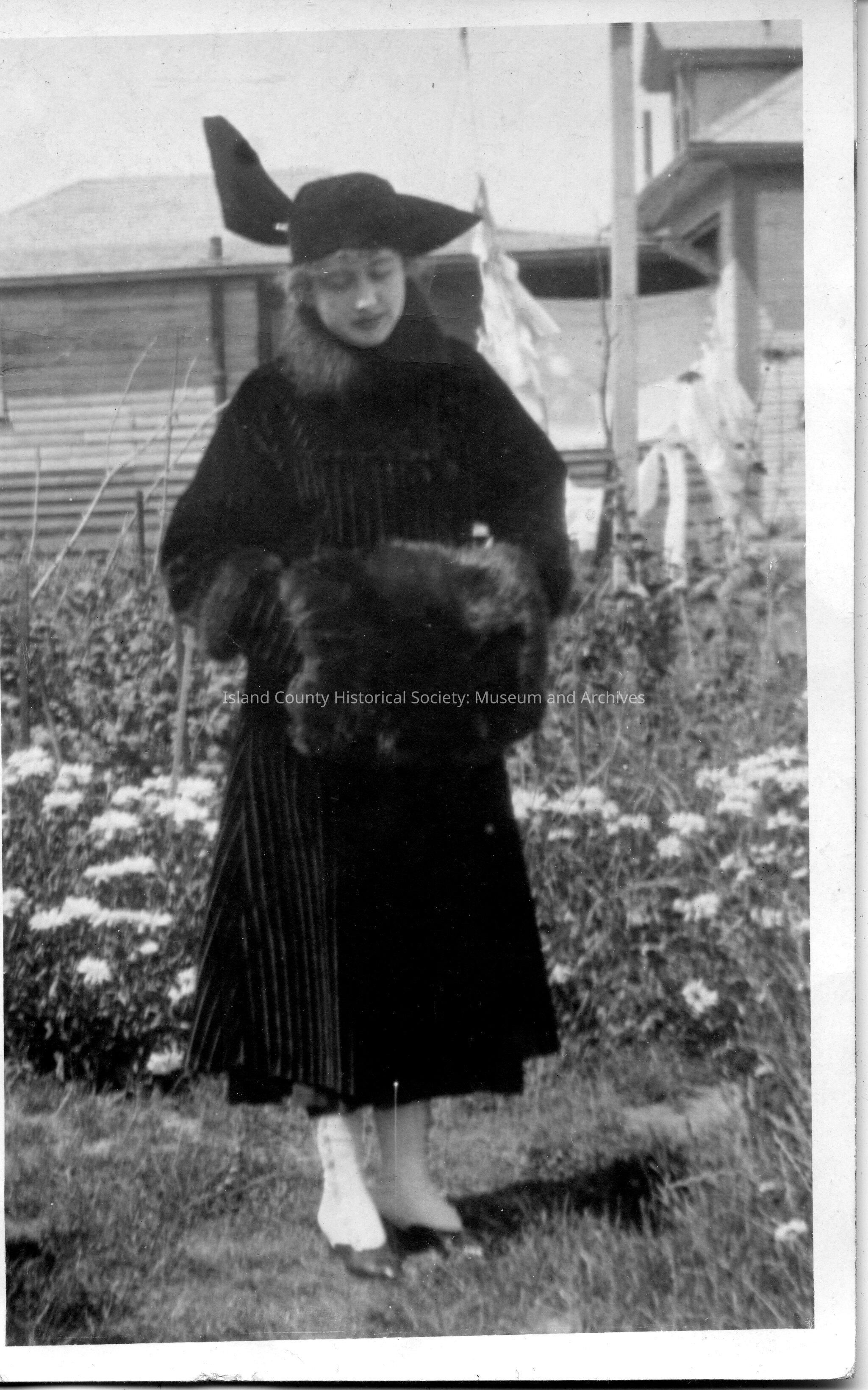 From old entry: Frances (Mrs. Marion Power) wearing a fur muff and spatsLexicon