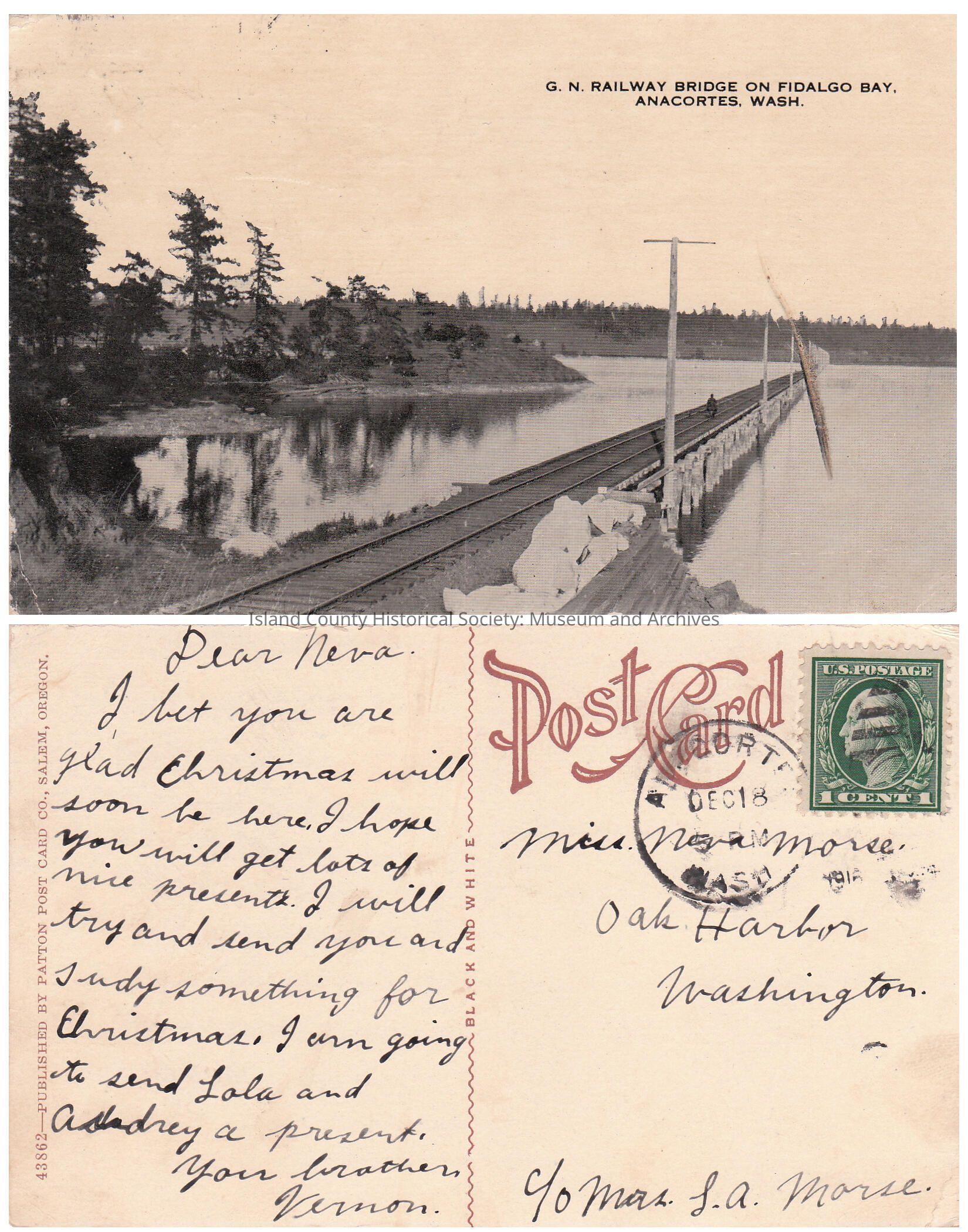G.N. Railway Bridge on Fidalgo Bay, Anacortes, Wash To Miss Neva Morse c/o L. A. Morse from Vernon