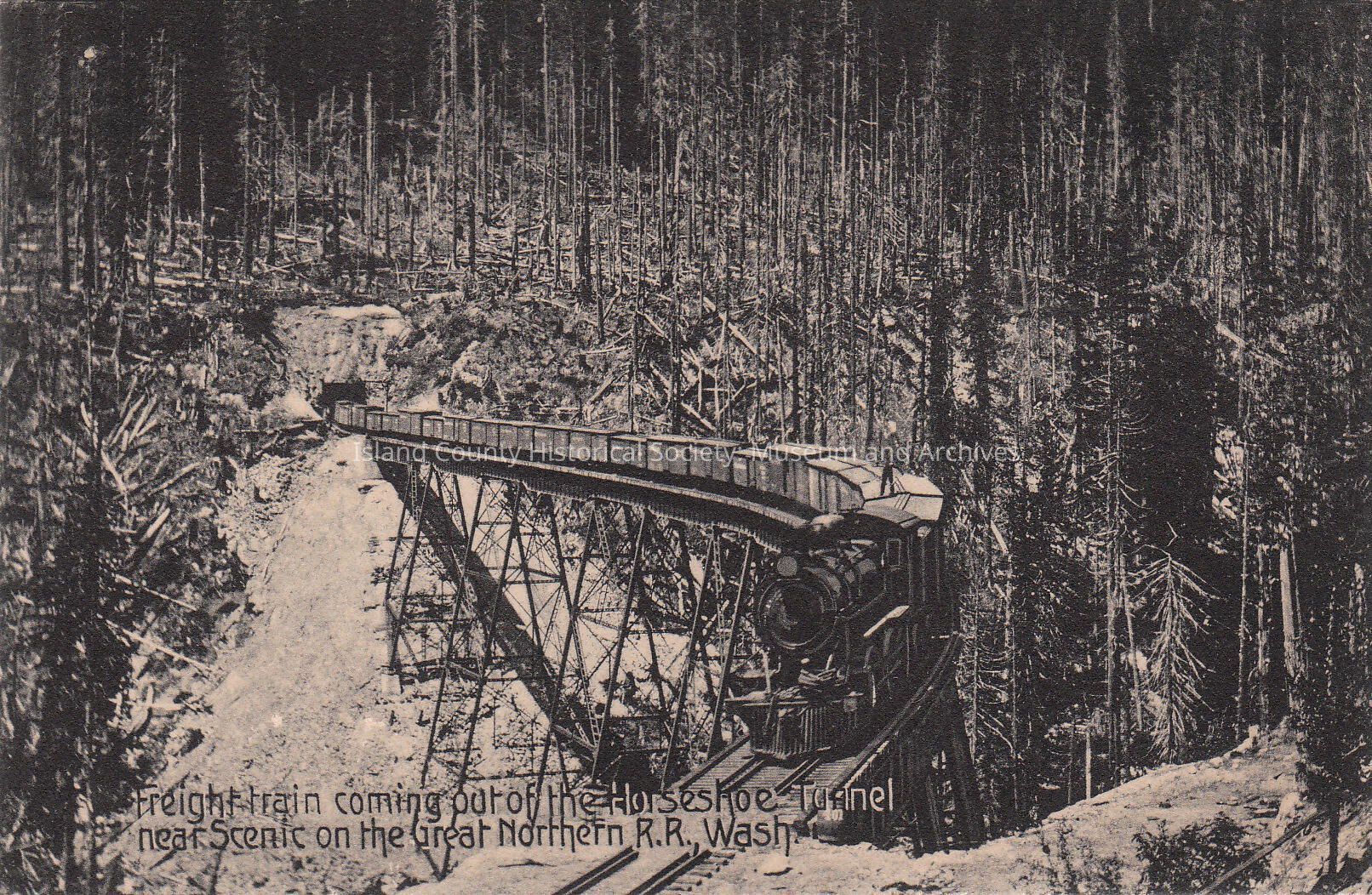 Freight Train coming out of the Horseshoe Tunnel near Scenic on the Great Northern R.R. WashCollection