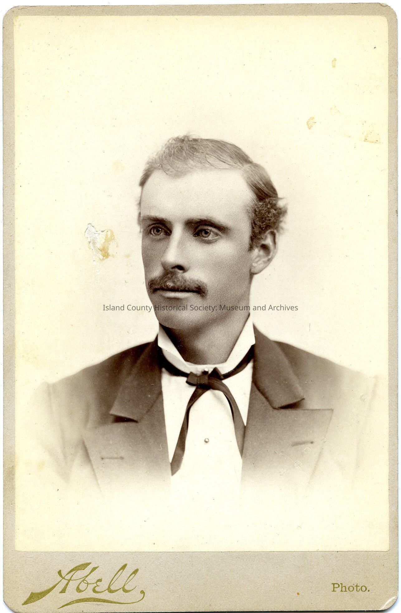 A photo of a man in a suit with a small ribbon tie. He has a mustache. On the back: Albert H. Kellogg - 1855-1945.