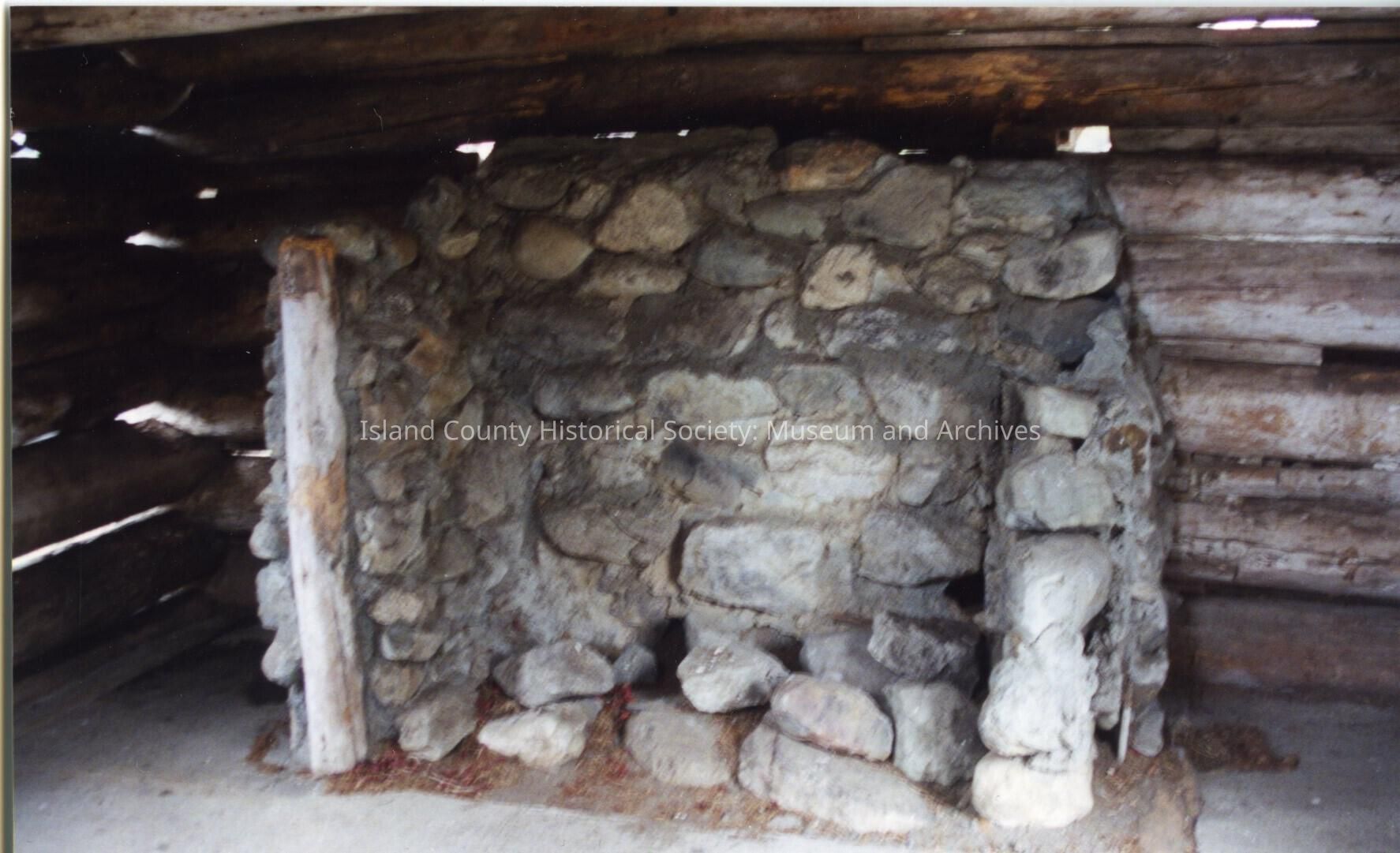 Davis blockhouse (?). Interior view. Blurred. Stone hearth.