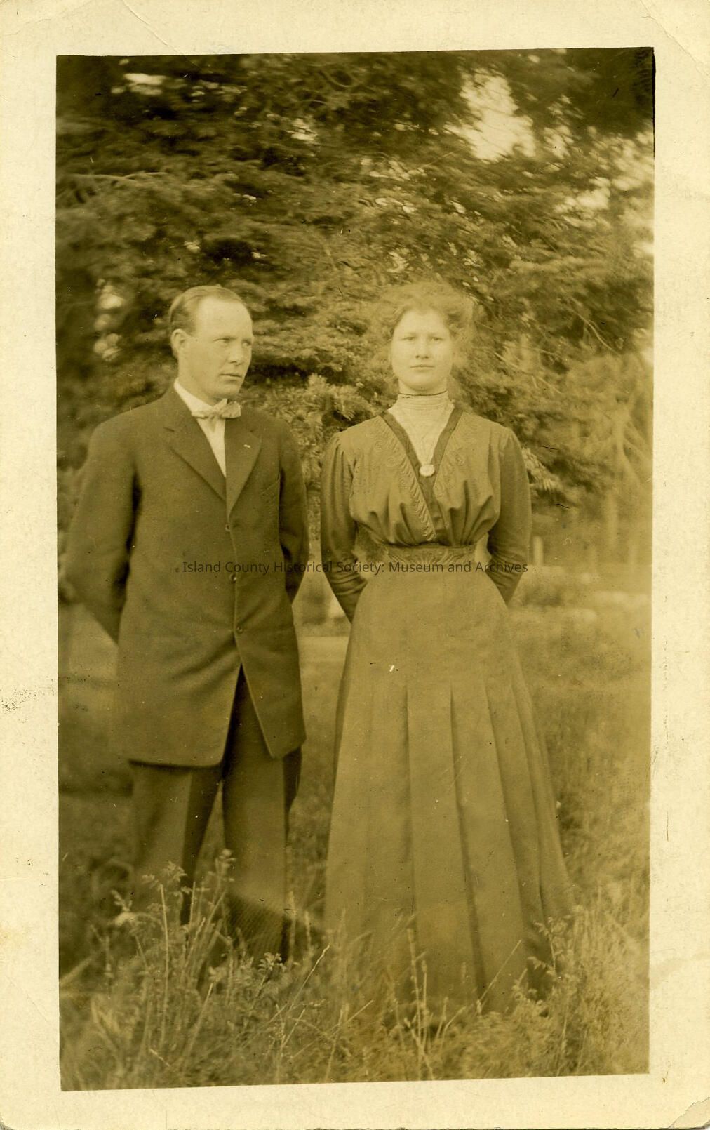 Portrait of Grover Allen and Anna Grasser standing in a field together.