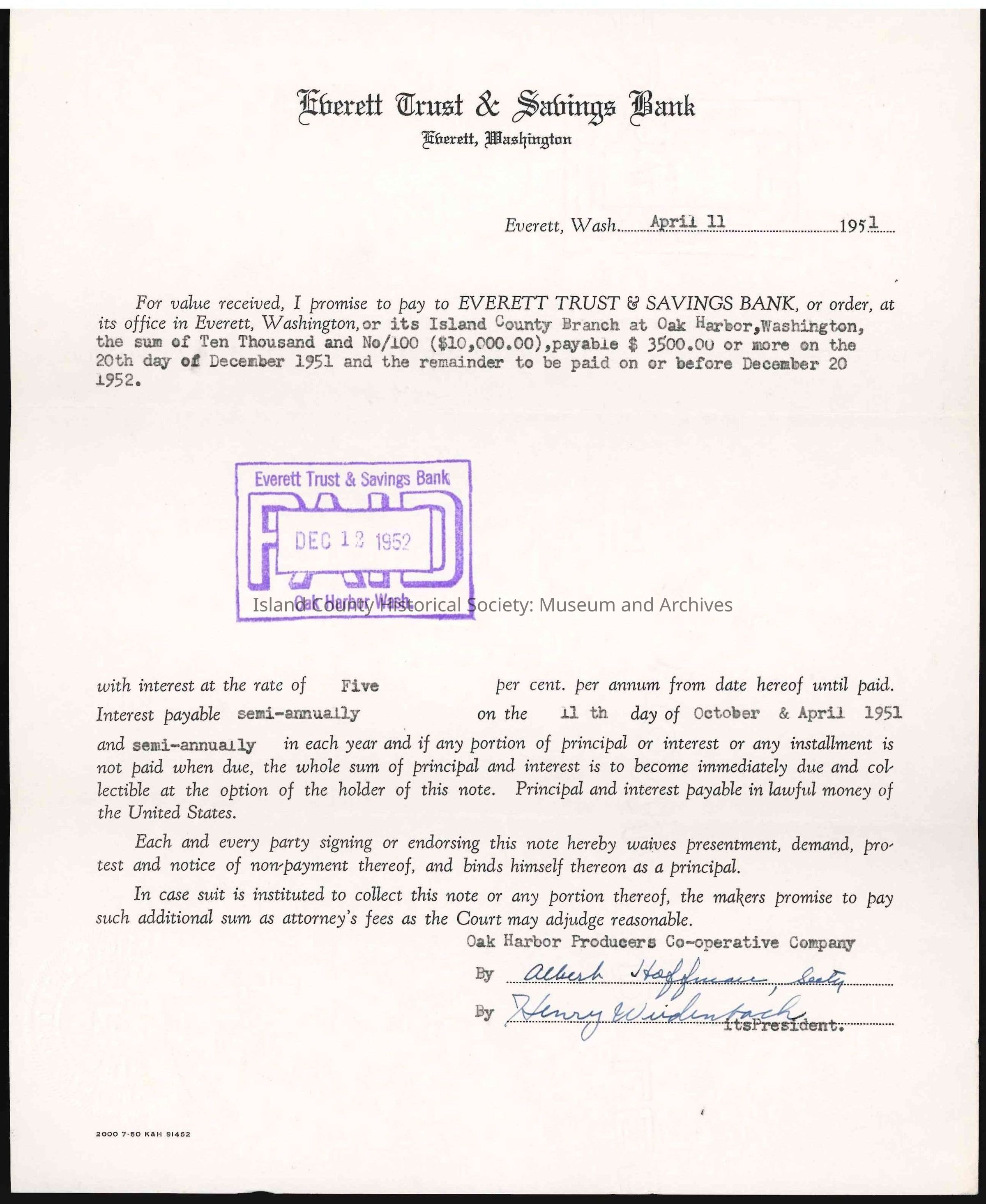 Promissory Note - Everett Trust & Savings Bank, Oak Harbor Producers Co-op Co.
