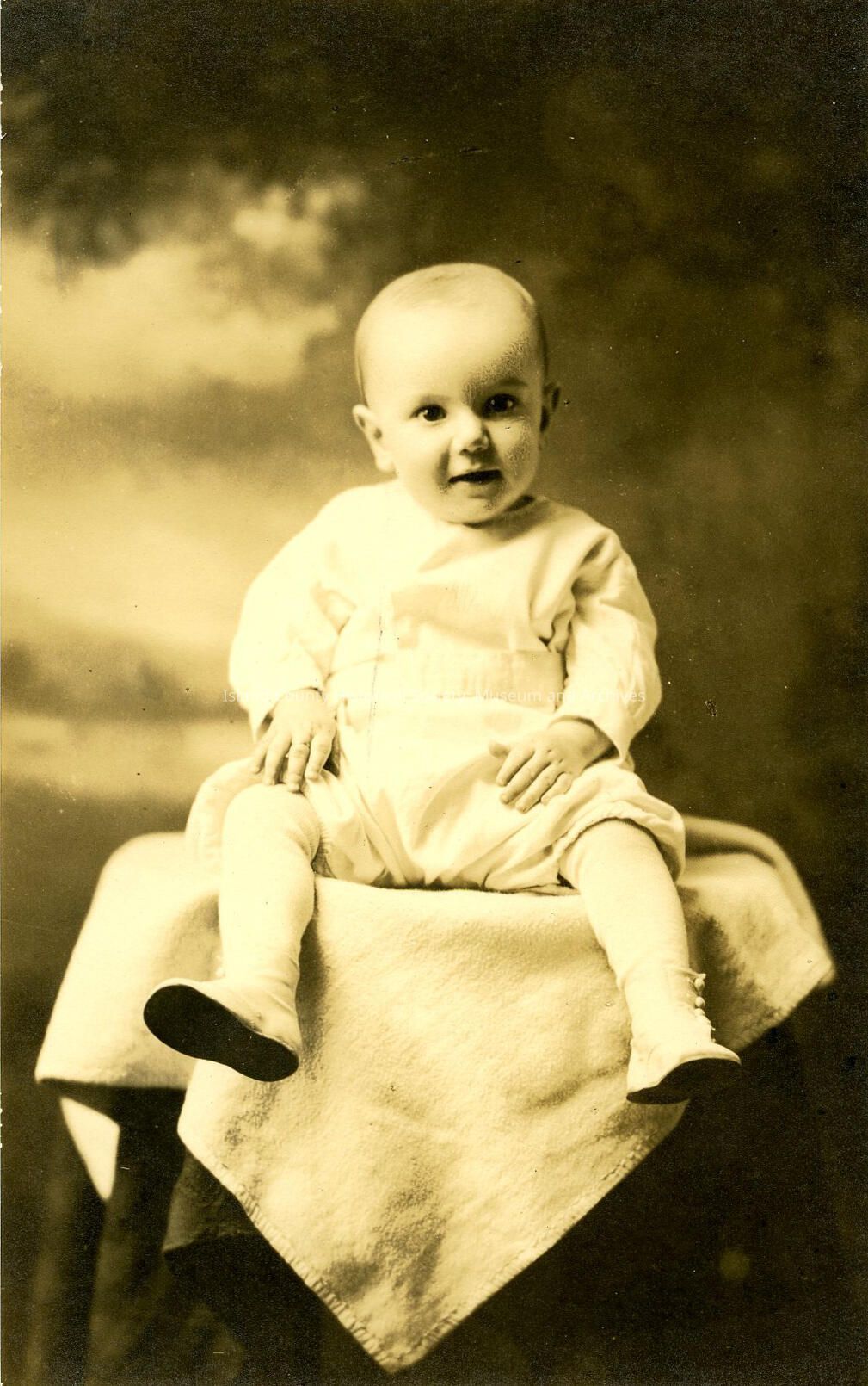 Willy Irving Amsberry at 1 year Son of Emma Kineth Amsberry Postcard from 1908-1924. Goes with a cardboard photo holder in another sleeve.