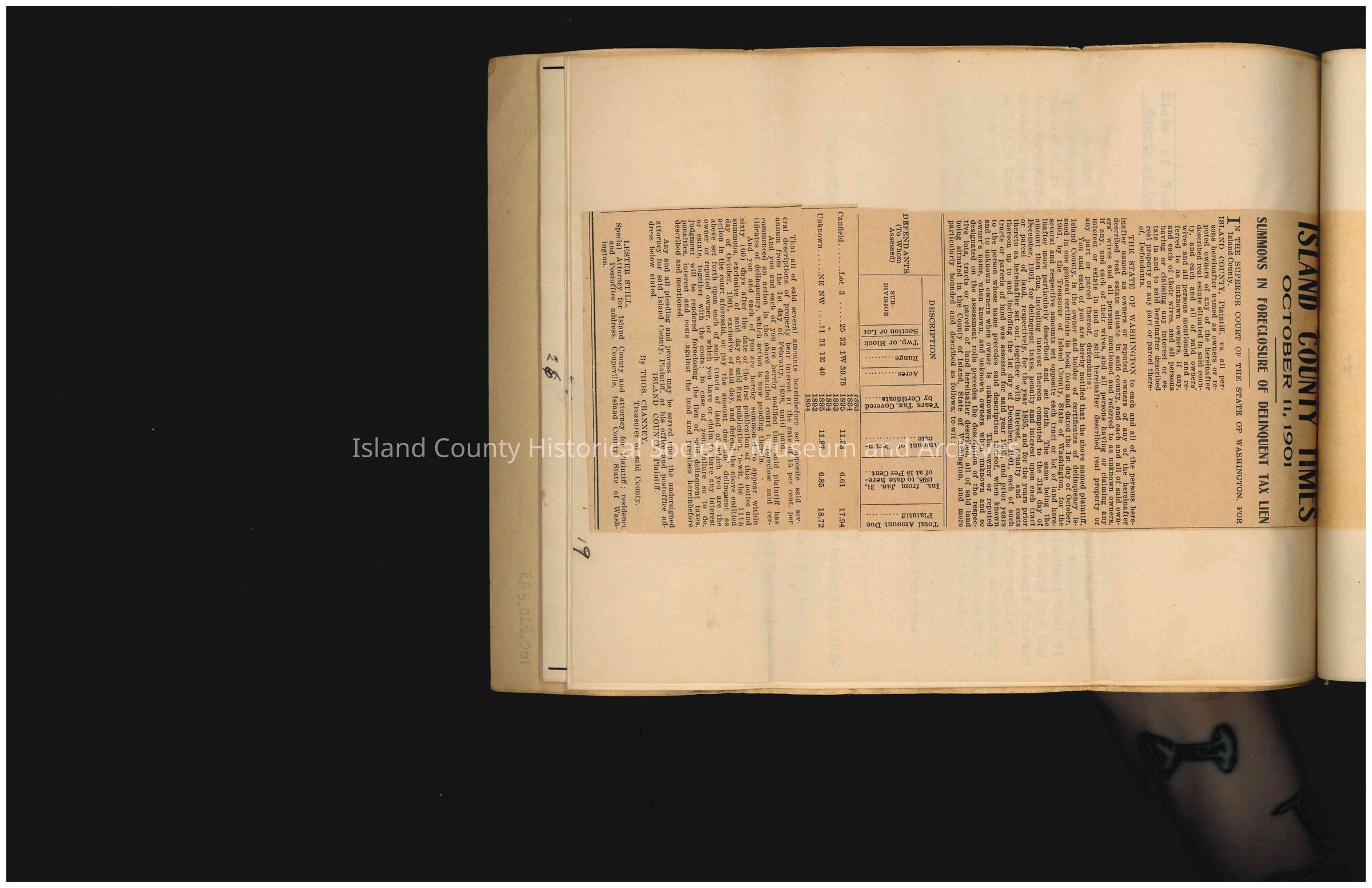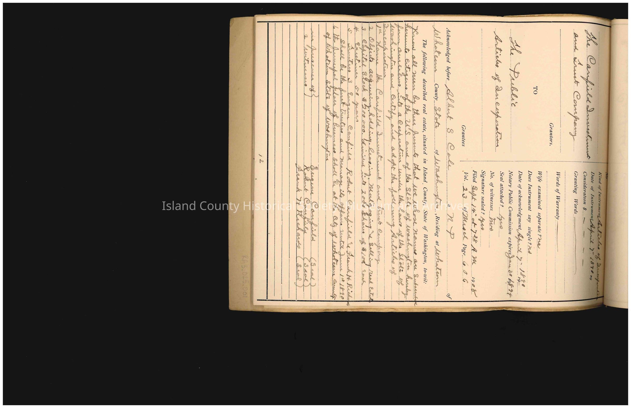 More Grantors and Recipients are listed within this title. To view this Abstract of Title and its subsequent Grantors/Recipients, please email the ICHS Archivist at arc-ichs@whidbey.net.Collection