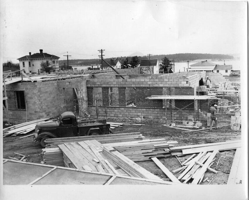 These photographs depict the construction of the current courthouse in Coupeville.