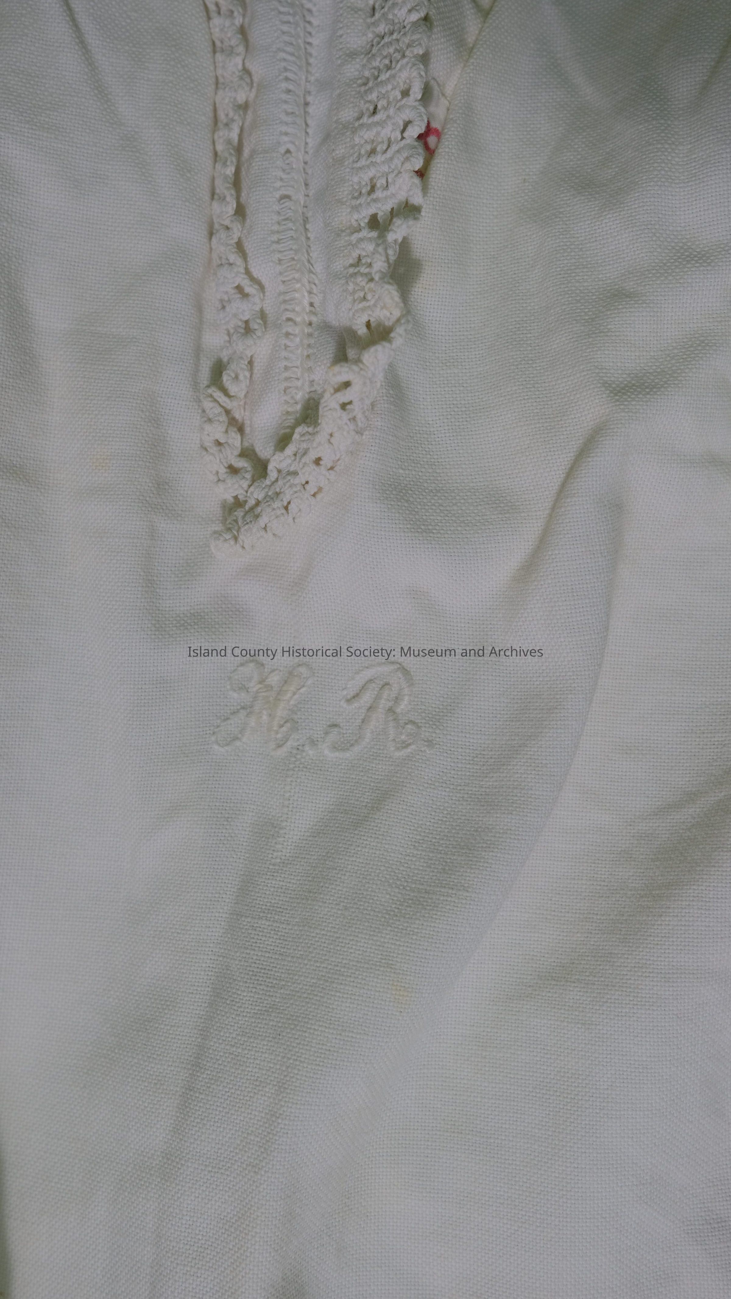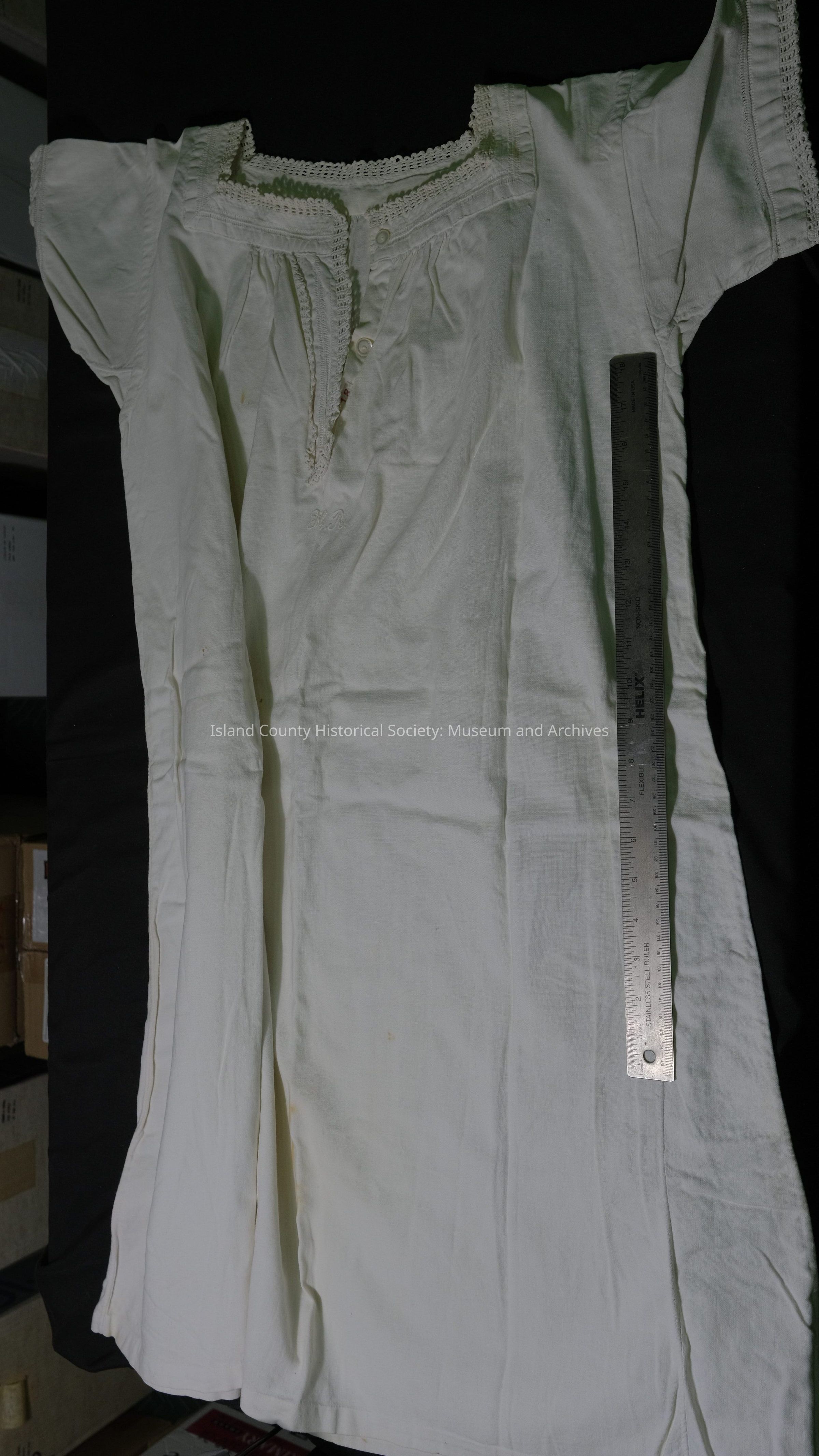 White cotton nightdress - crocheted & hemstitched - monogramed "HR-18". Hedwig Maxim,
