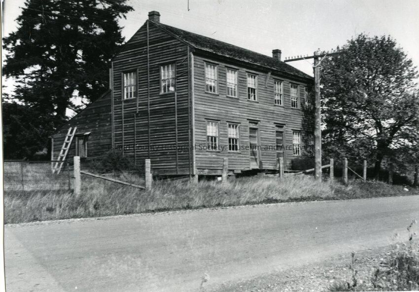 On the back typewritten: "Reproduced from teh collections of the Library of Congress" Written: "1st Island Court House, coveland, Whidby Island, S. E. View"Collection
