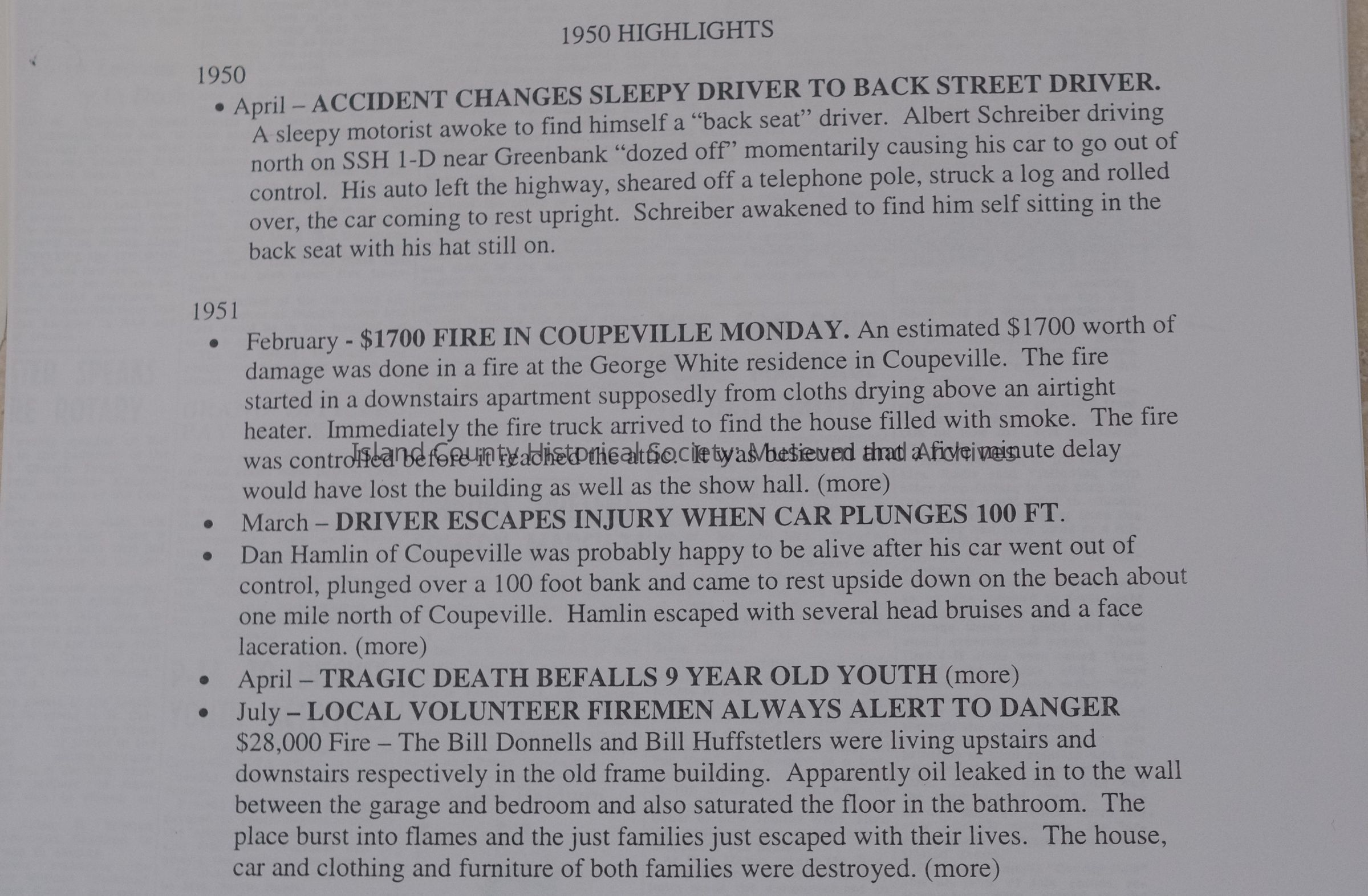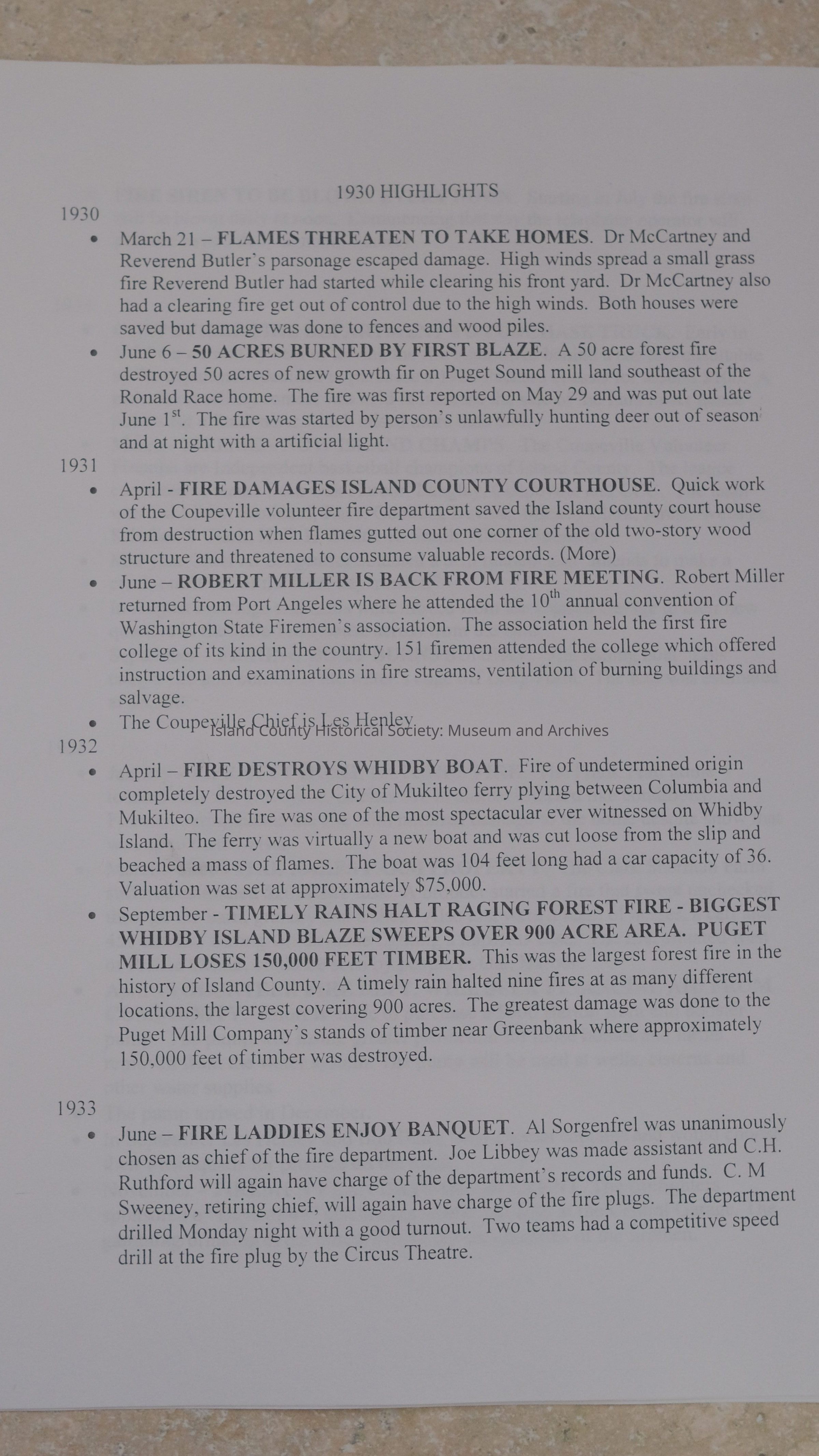 Large collection of documents, copies of newspaper articles, meeting minutes, highlights, and history of the Central Whidbey Fire and Rescue