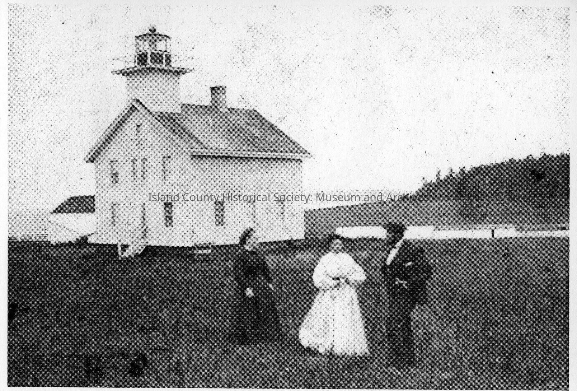 ""Sunday Best" c. 1865 Red Bluff Lighthouse, the first light on Admiralty Head, was a popular social spot attracting many visitors." "Lighthouse Centennial 1903-2003" "Published by the Friends of Admiralty Head Lighthouse"