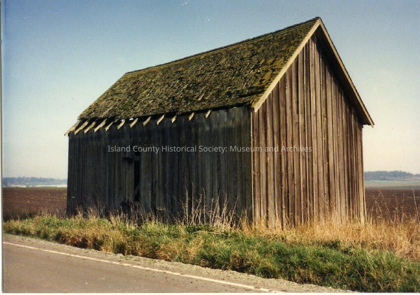Ralph Engle Farm Barn built as one of many outbuildings on the original donation land claim in the late 1870's or 80's. Barn is shown by the roadside in a field.