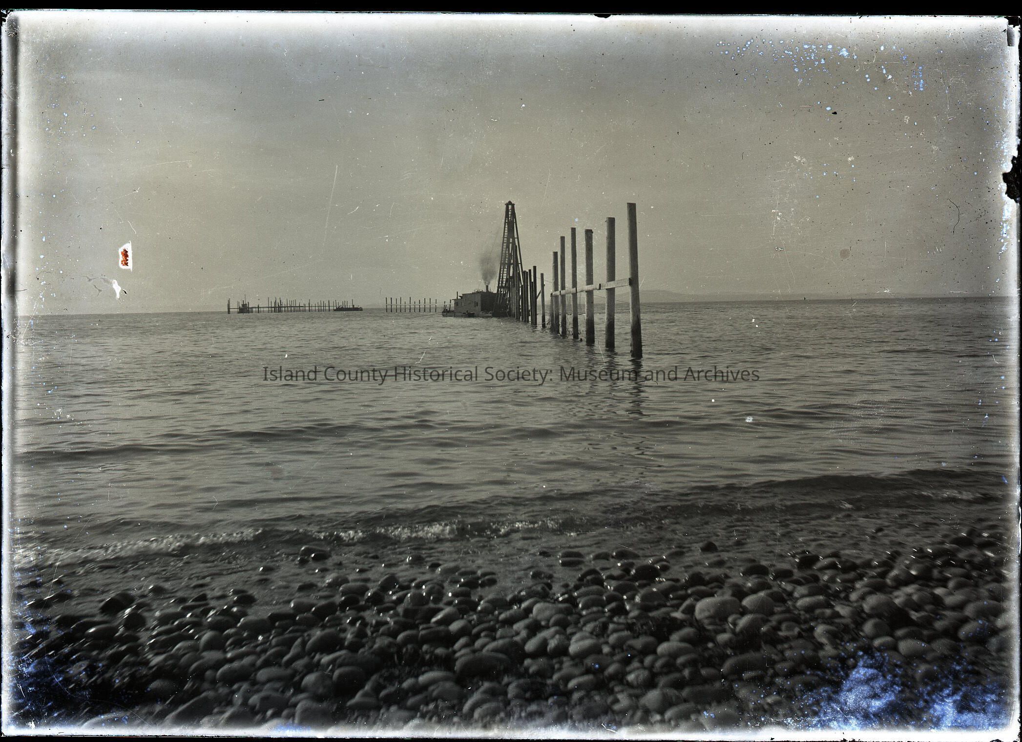 Piers in the water to a structure off the coast. It is an old fish trap.