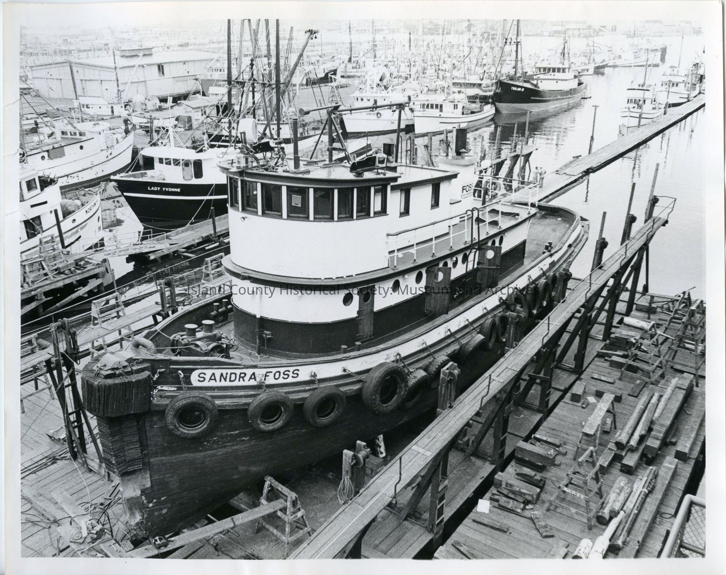 Photograph of the "Sandra Foss". At the marine railway, south end of Ballard Bridge at the fisherman's terminal. C. 1974.Photograph Details