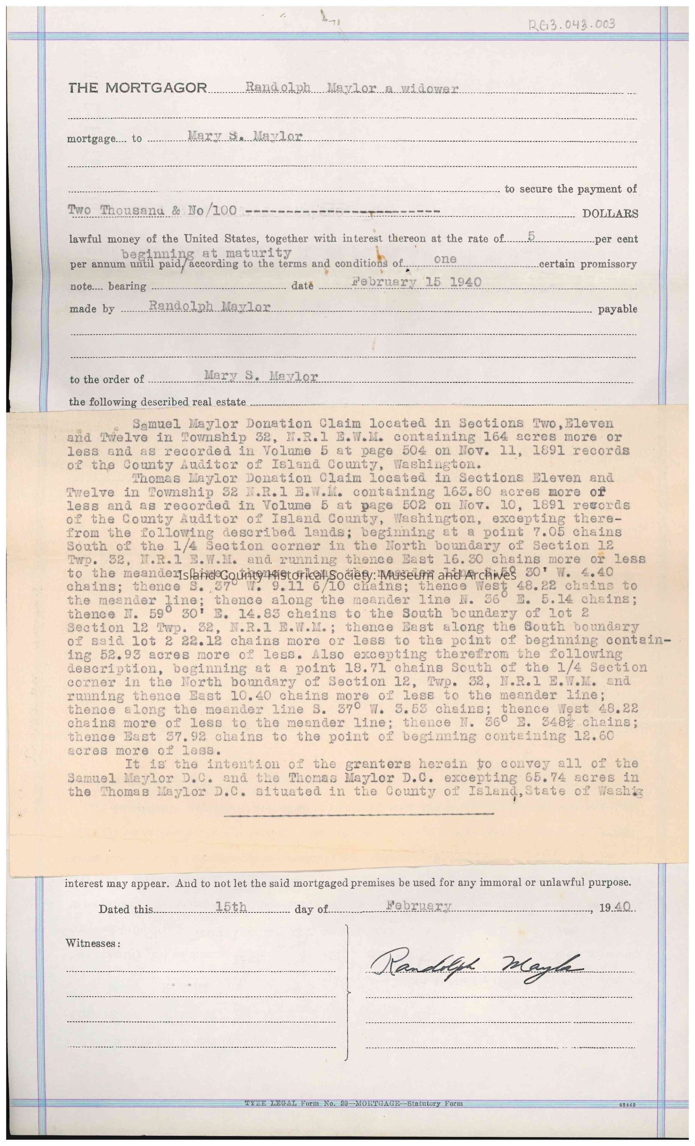 Mortgage from Randolph Maylor to Mary S. Maylor, filed 15th February 1940.