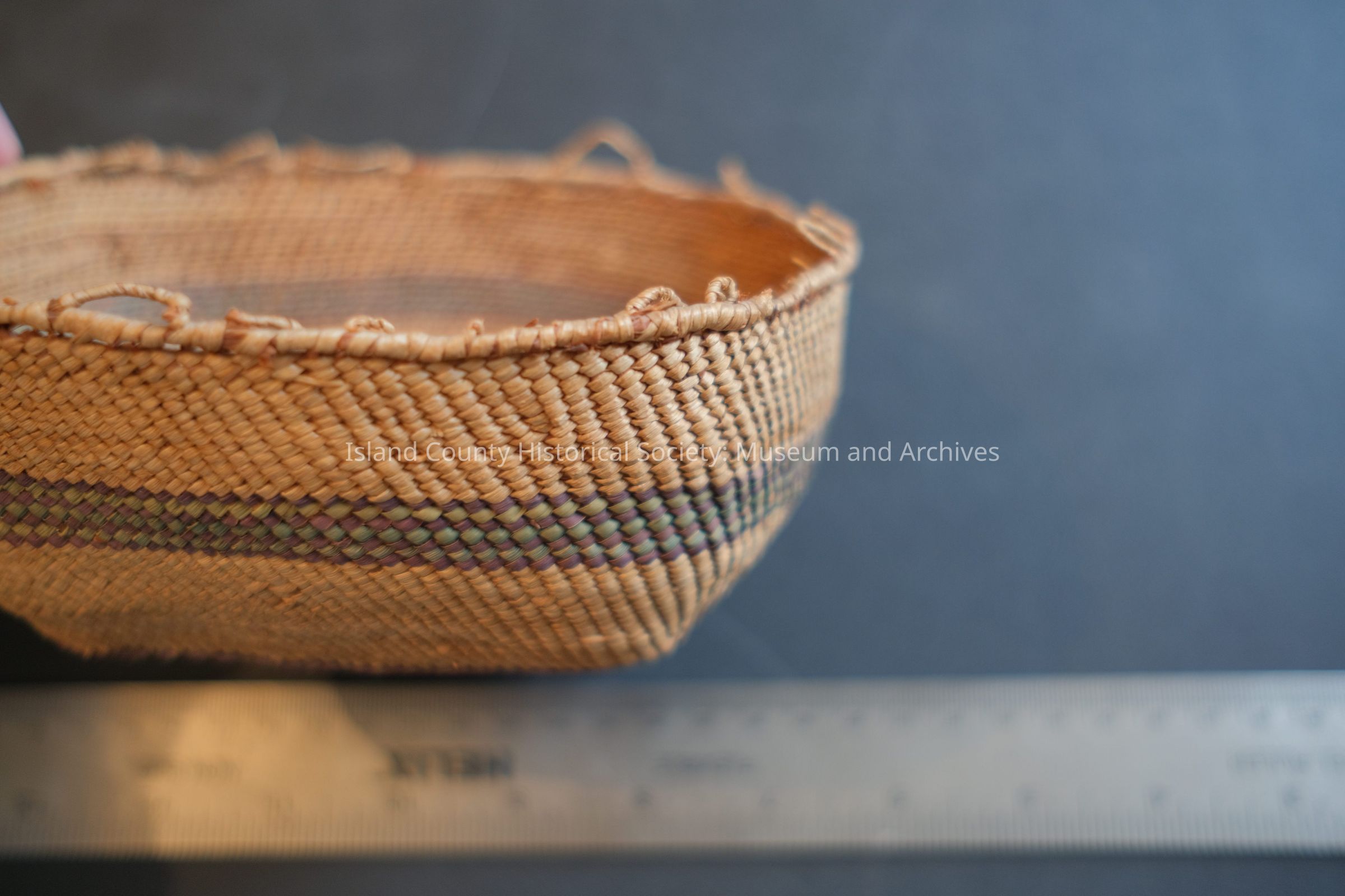 oblong, woven cedar basket, unk affiliation