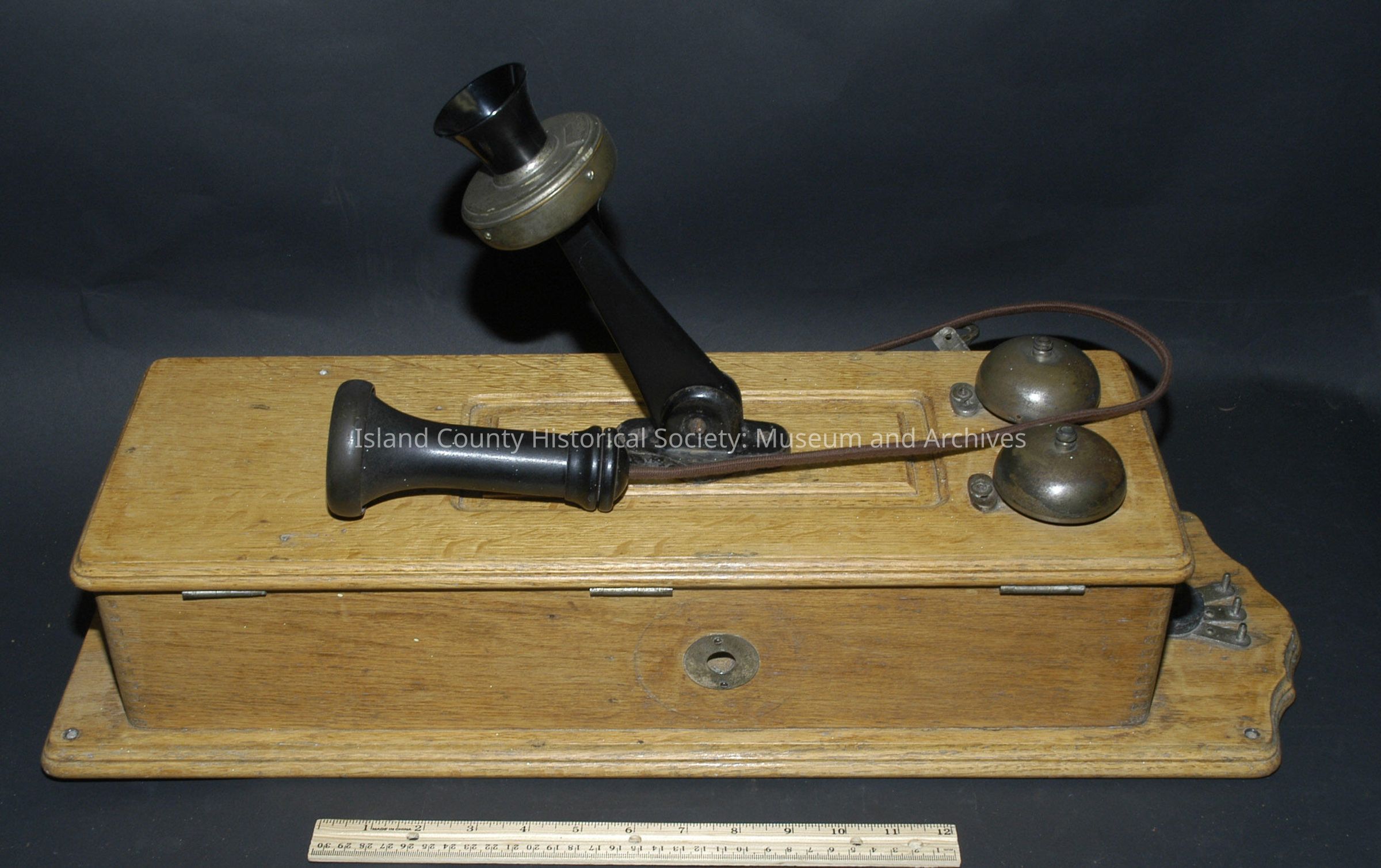 Old oak wall telephone-crank type. 1920-1930 per old entry