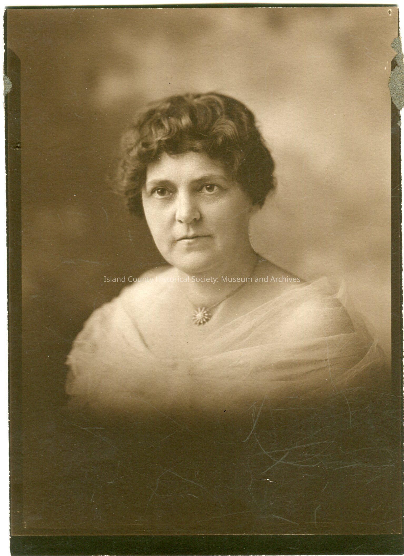 Photo of a woman wearing an off-the-shoulder chiffon dress, She has a small sunburst necklace. Her hair is curled.