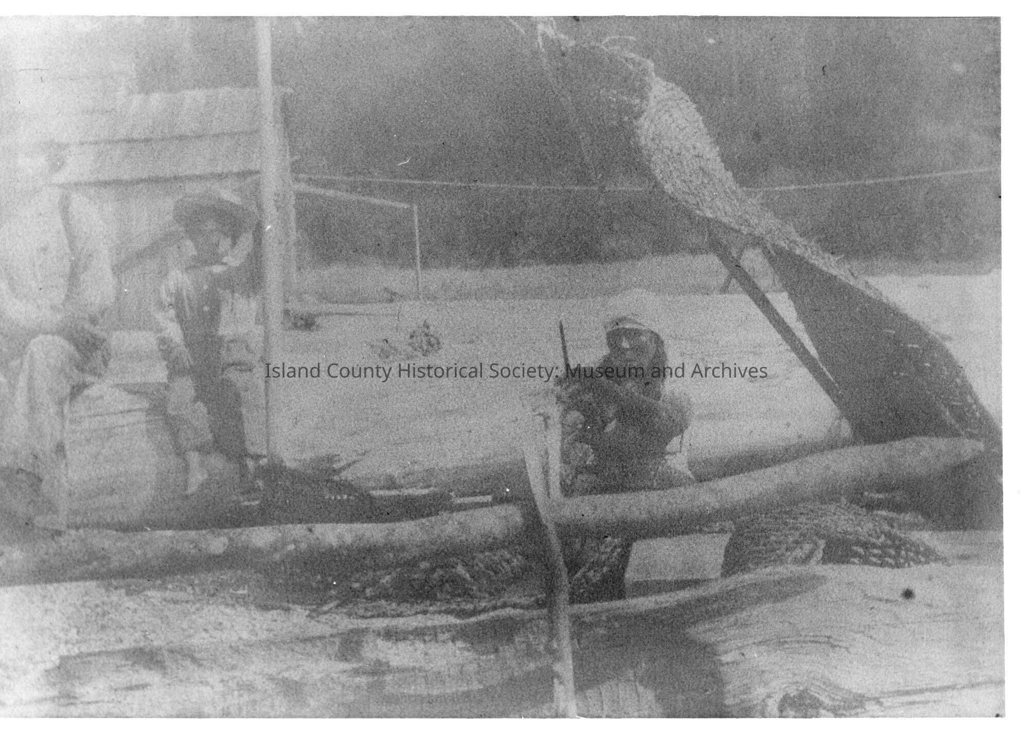 Indigenous Peoples of the Northwest Coast Mrs. Jim Whiskey drying clams on beach Given by Lillian Huffstettler.