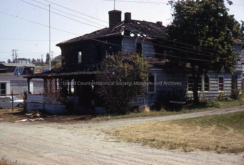 Blockhouse Inn Coupeville. Fire gutted the establishment. Date stamped on the slide reads August 1968.