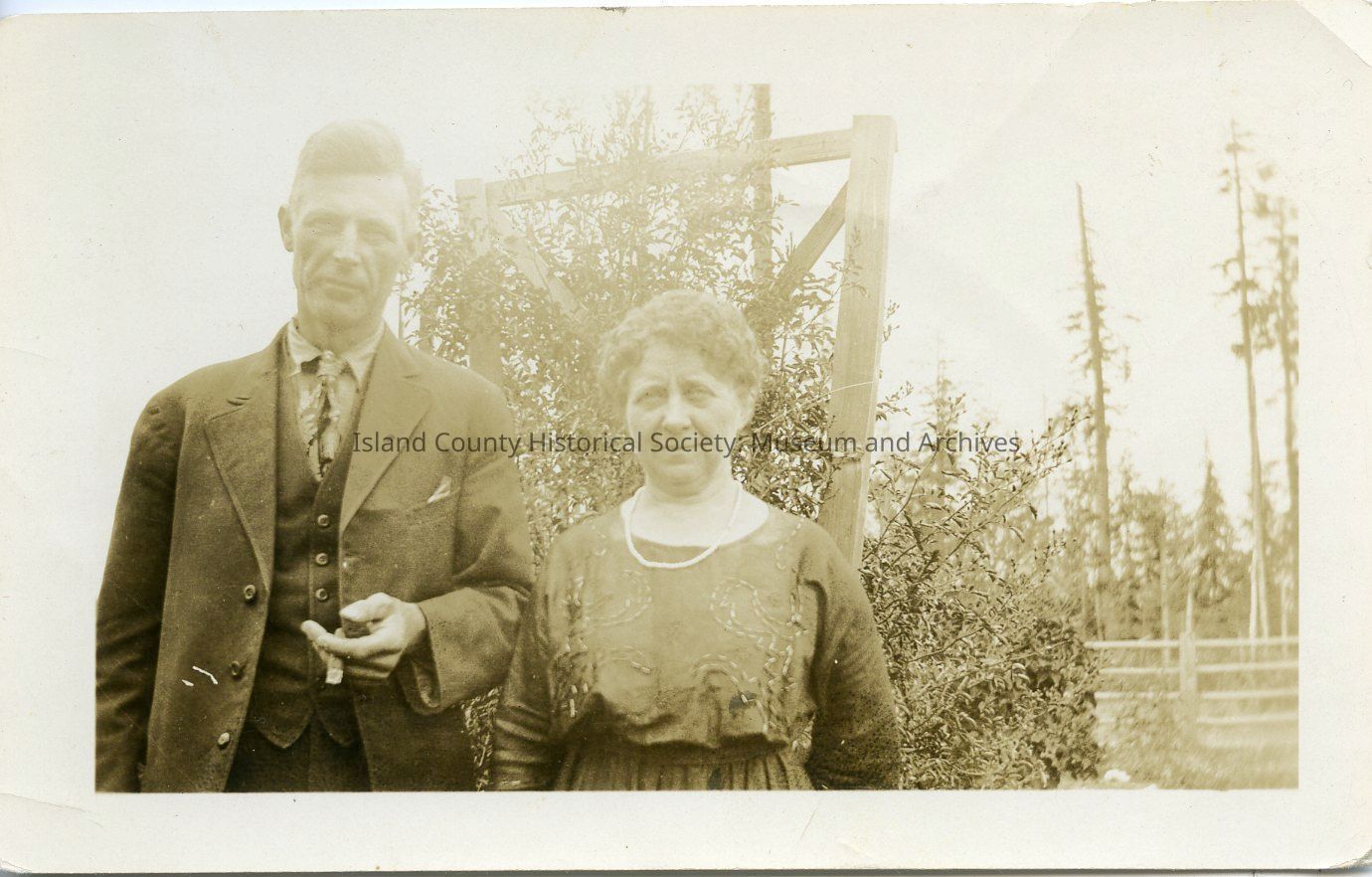Photograph of Bill Day and his wife. Handwriting on reverse of photo reads, "Mrs. Wm [William] Prinew. Bill Day & wife, Greenbank, Wn [Washington]." Likely c. 1900-1915.Photograph Details