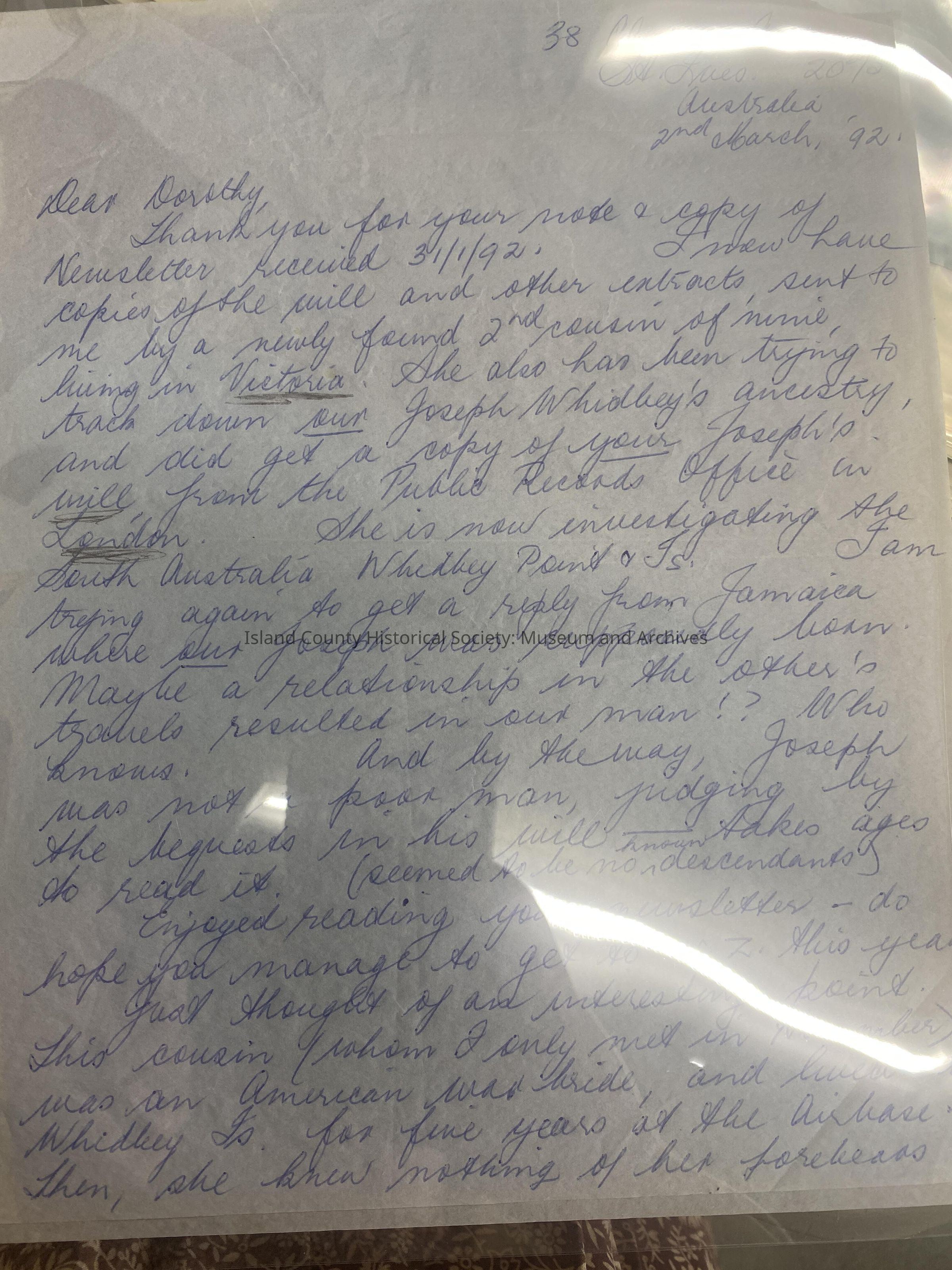 Letter to Dorothy Neil, March 2, 1992