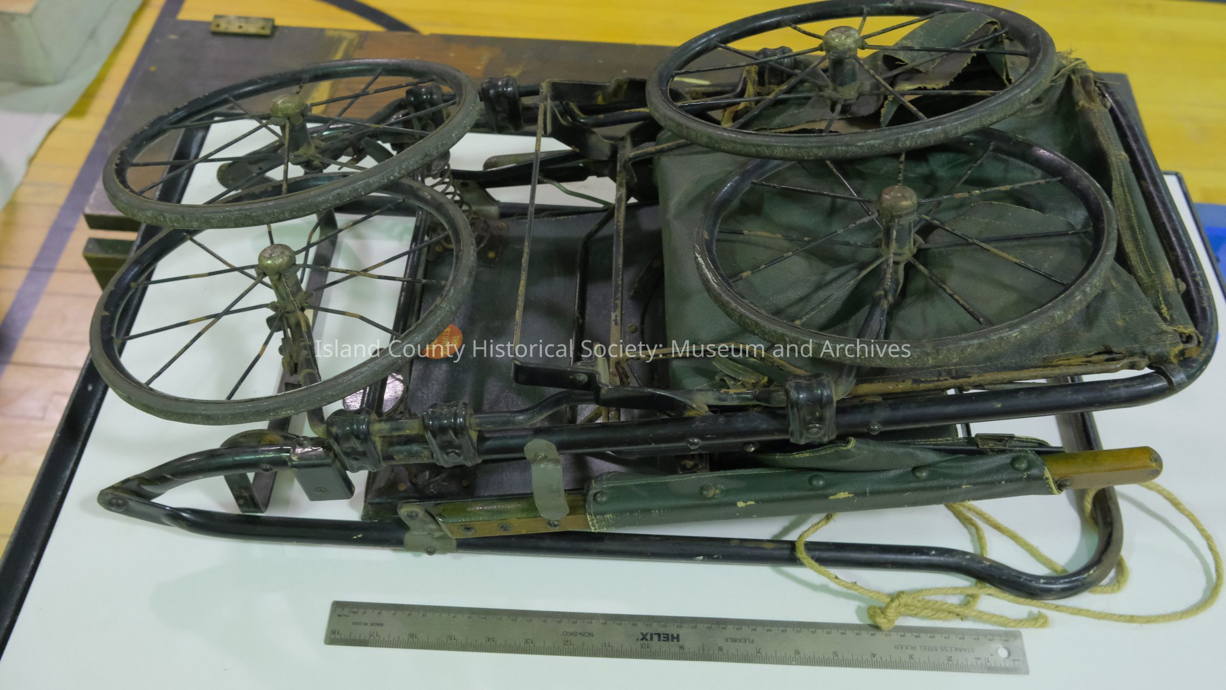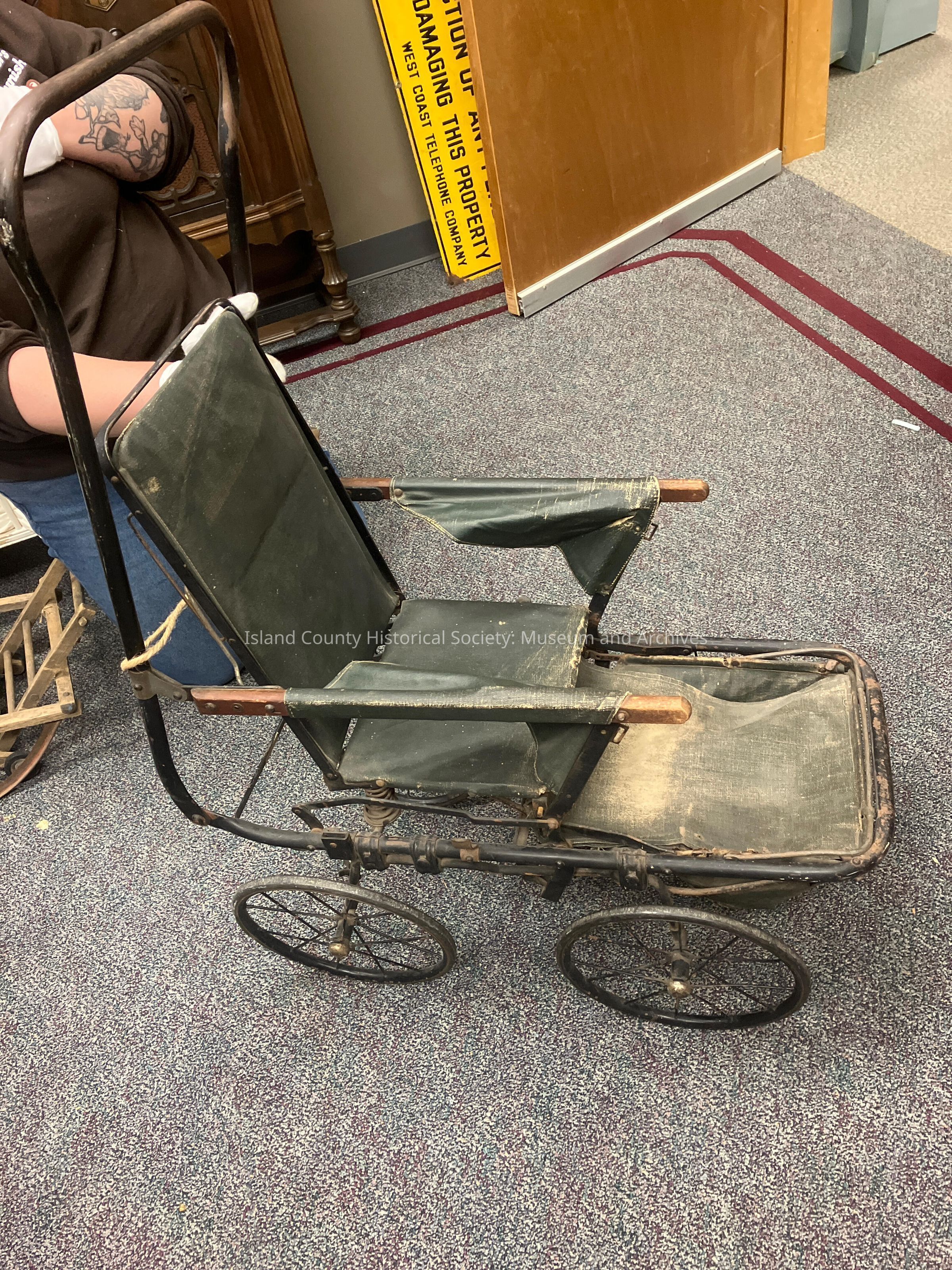 Iron & leatherette pram. From Newberry House, "The Sturgis 600"