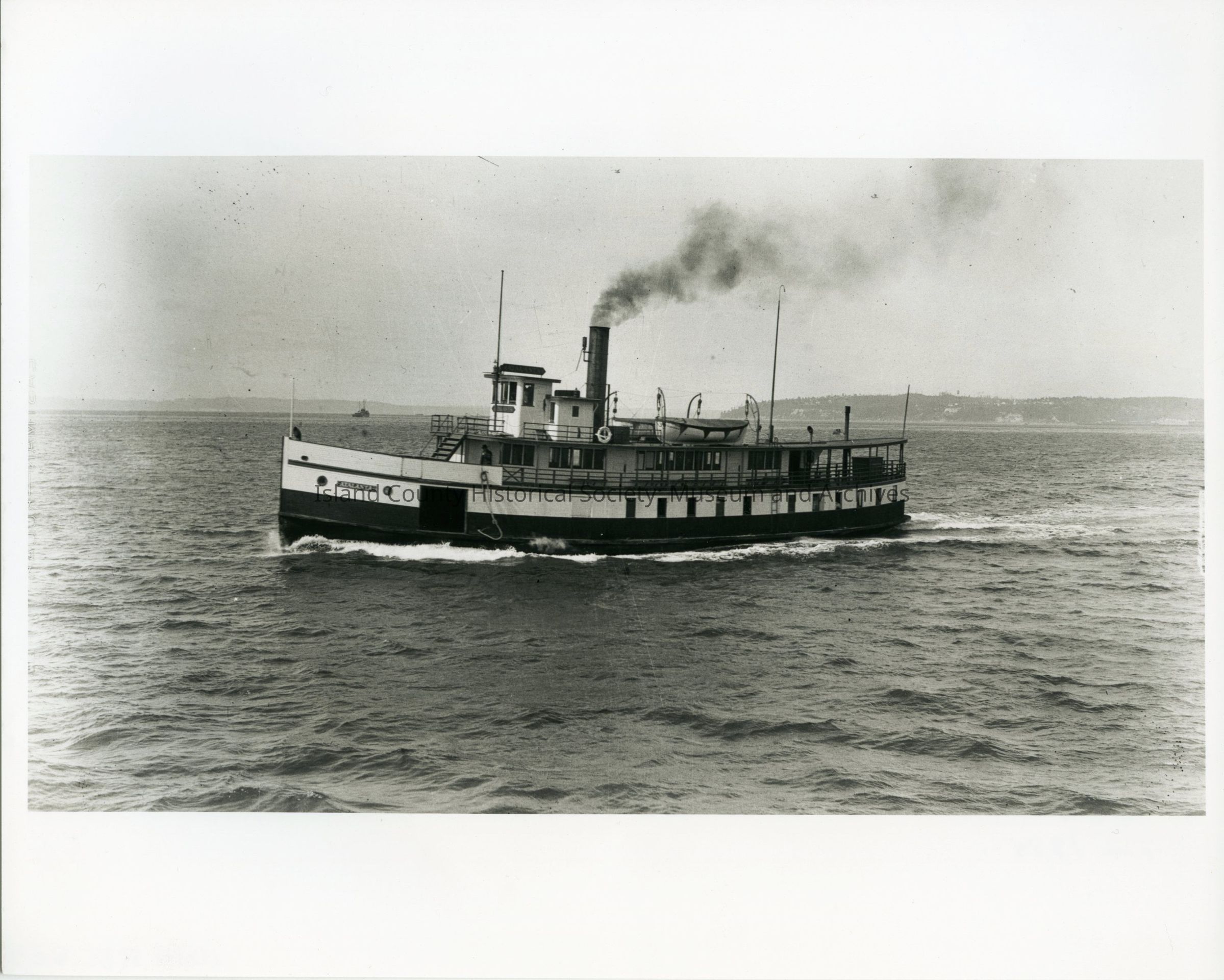 On back: "Built in Tacoma in 1913 by The Marine Supply Co. 147 tons, 111.7 ft. long x 23 ft. beam x 6.7 ft. draft. 5 cyl. triple expansion steam engine, 500 HP. Burned for scrap in 1940. She was the last steamer on the Whidbey Island run. Deception Pass was built in 1935."Collection