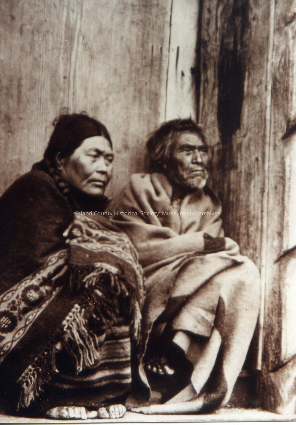 Indigenous Peoples of the Northwest Coast Two men sitting on the ground wrapped in blankets.