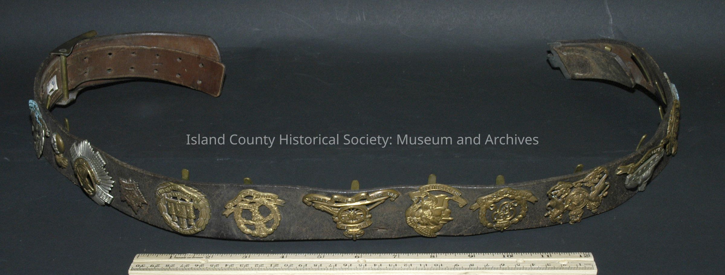 Belt - German officier's lined with regimental brasses - mostly English.