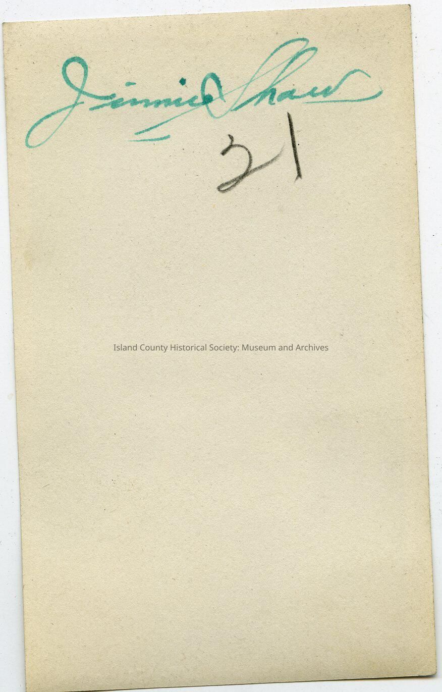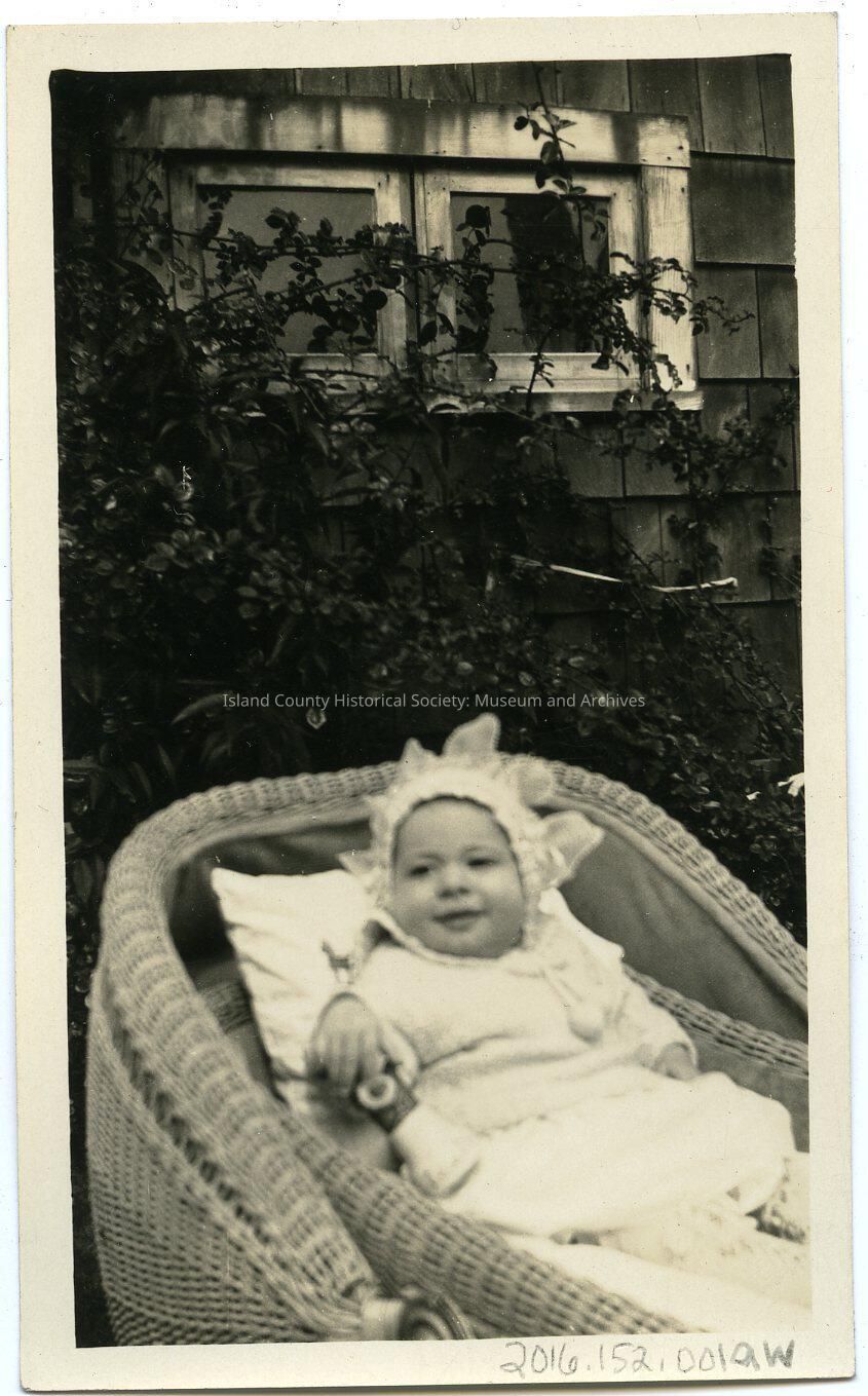 Baby in a carriage - holding a toy in right hand. Hat. On the back: "Jimmie Shaw" Might be same baby as in 2016.152.001bc.