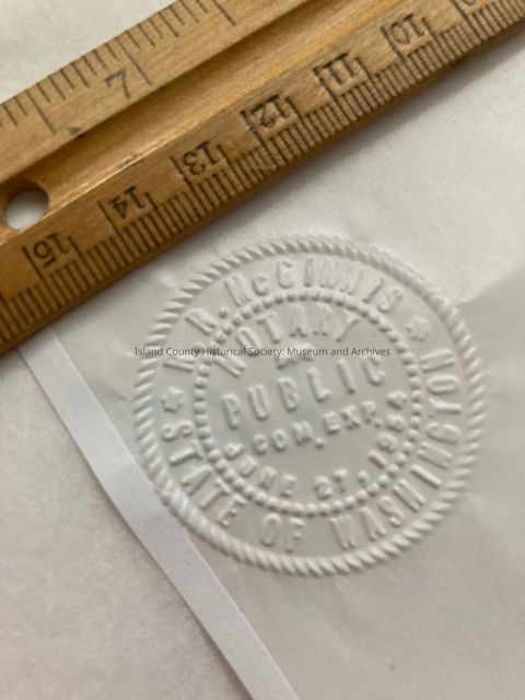 metal, handheld notary seal for RR McGinnis, State of Washington, Commission Expire June 27, 1954