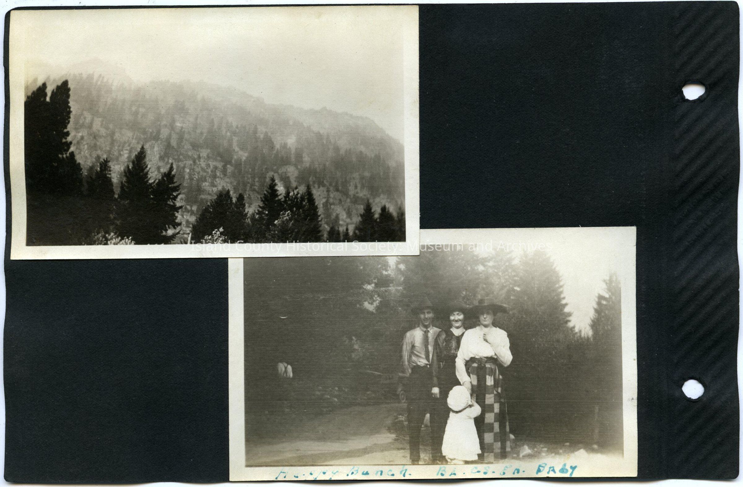 Left: Scenery - mountainside with trees and rocks. 4.5"W x 2.75"H