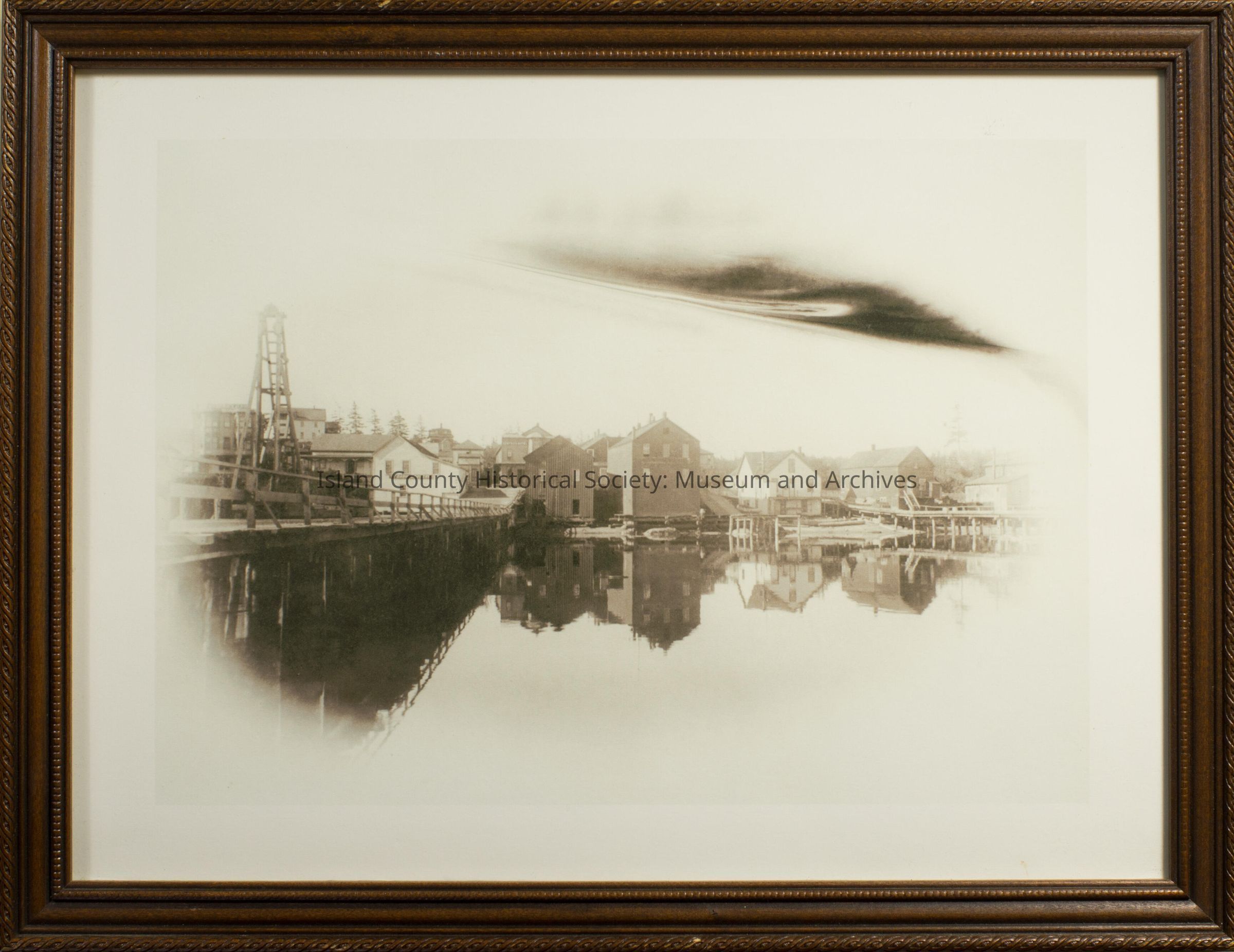 On the back of the photo reads 254 Coupeville Waterfront, Whidbey Island, Washington, c.1900. Waterfront, south of present dock. At end of dock "cash Grocery" and across the street the Central Hotel. Coutesy of Muscua, University of Washington Libraries, UW21313z.Made/Created