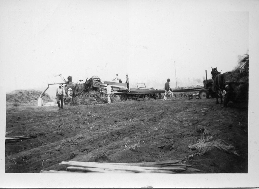 A photo of several people at a thresher with hay. Handwritten on the back is "Sept. 1939."